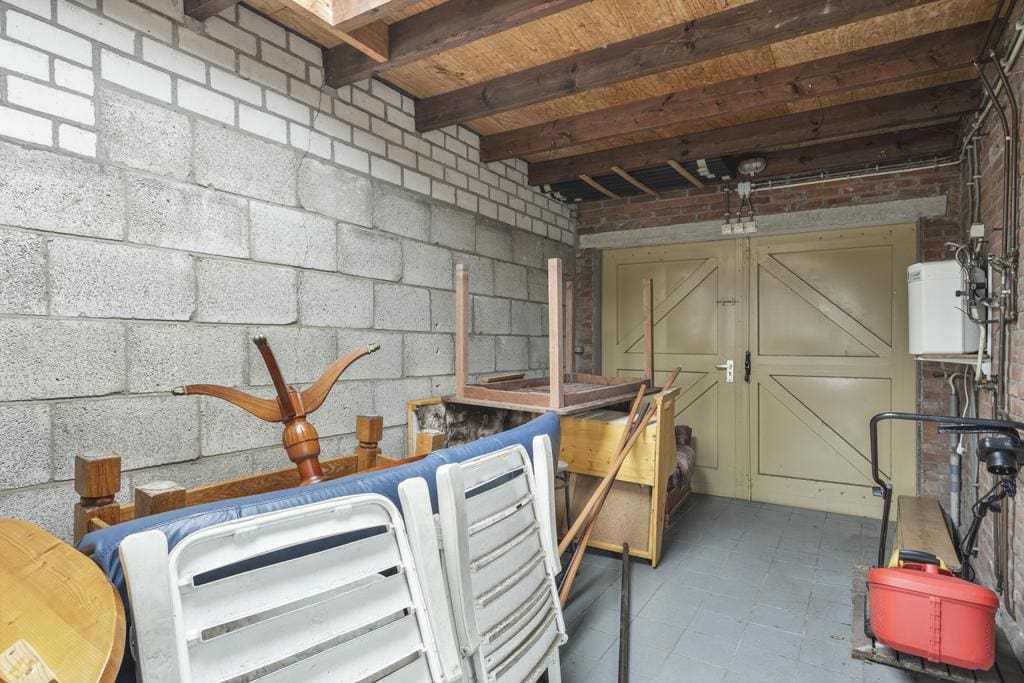 De ruime bijkeuken, waarin de aansluiting voor het witgoed is te vinden, is gelegen achter de garage en ook vanuit deze garage bereikbaar. De bijkeuken is volledig betegeld en beschikt over een radiator.