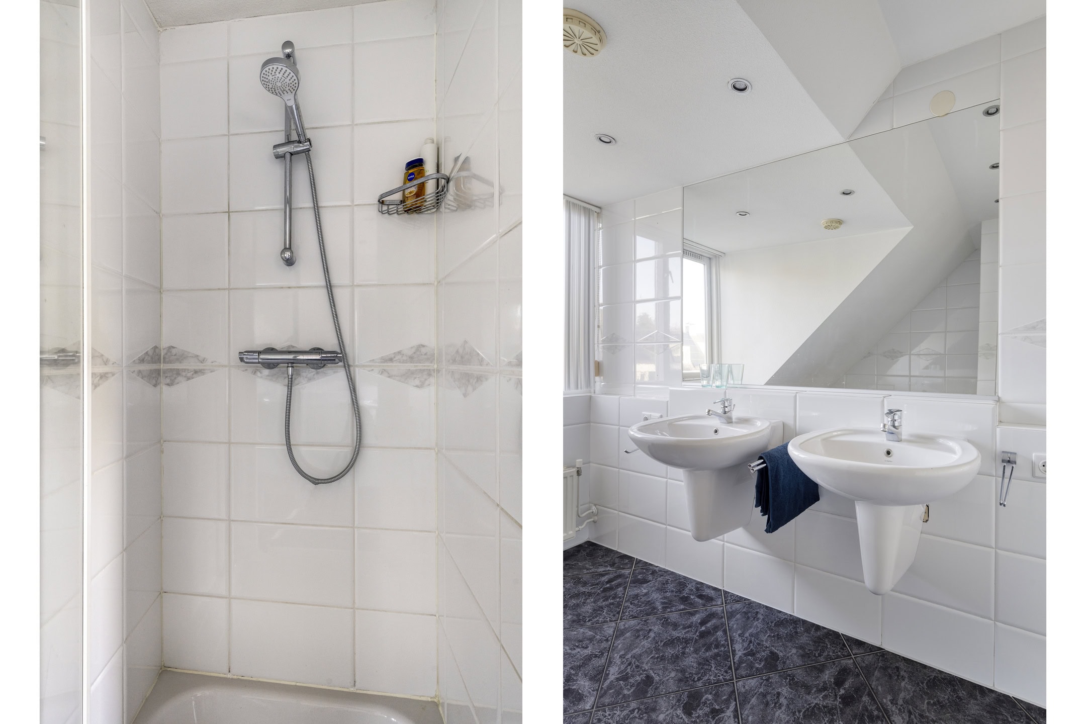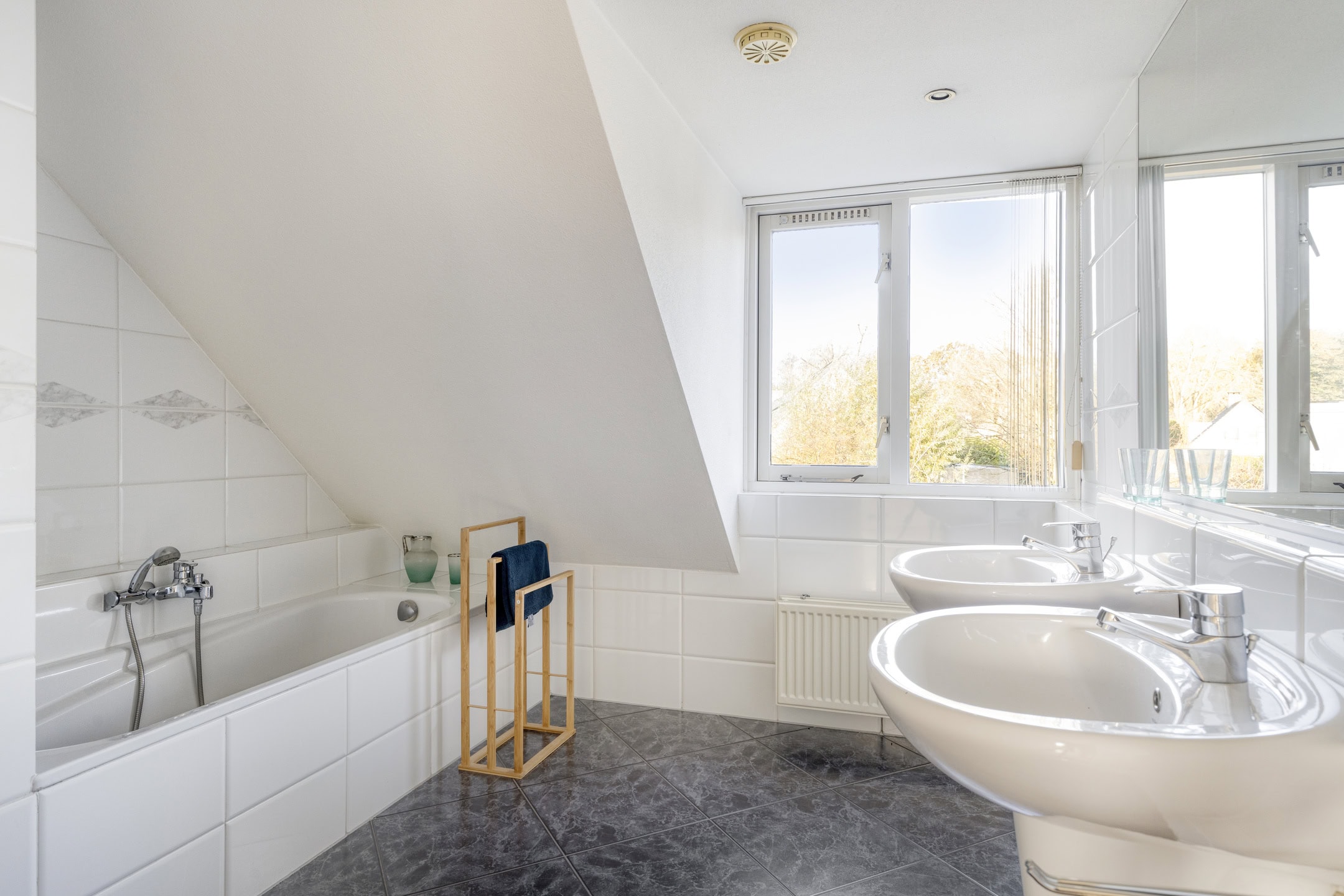 De keurige badkamer is volledig betegeld met lichte wandtegels en donkere vloertegels inclusief vloerverwarming. Daarnaast is deze ruimte voorzien van een ligbad, aparte douchecabine, dubbele wastafel en inbouwspots voor sfeerverlichting. Deze ruimte is uitermate geschikt om lekker te ontspannen na een drukken (werk)dag.