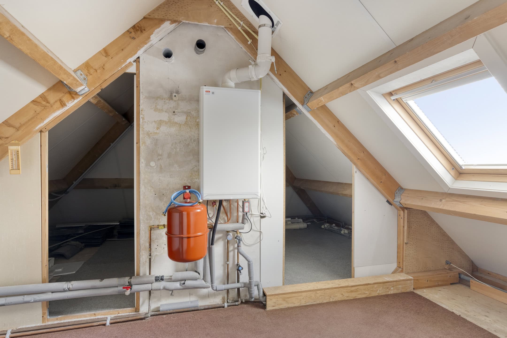 De zolderverdieping biedt volop mogelijkheden. De ruime overloop is voorzien van diverse praktische inbouwkasten met schuifdeuren waar ruimte is voor veel opbergmogelijkheden. De afgesloten zolderkamer beschikt over een dakraam en de opstelling van de cv-installatie. Ook is hier ontzettend veel extra bergruimte te vinden.