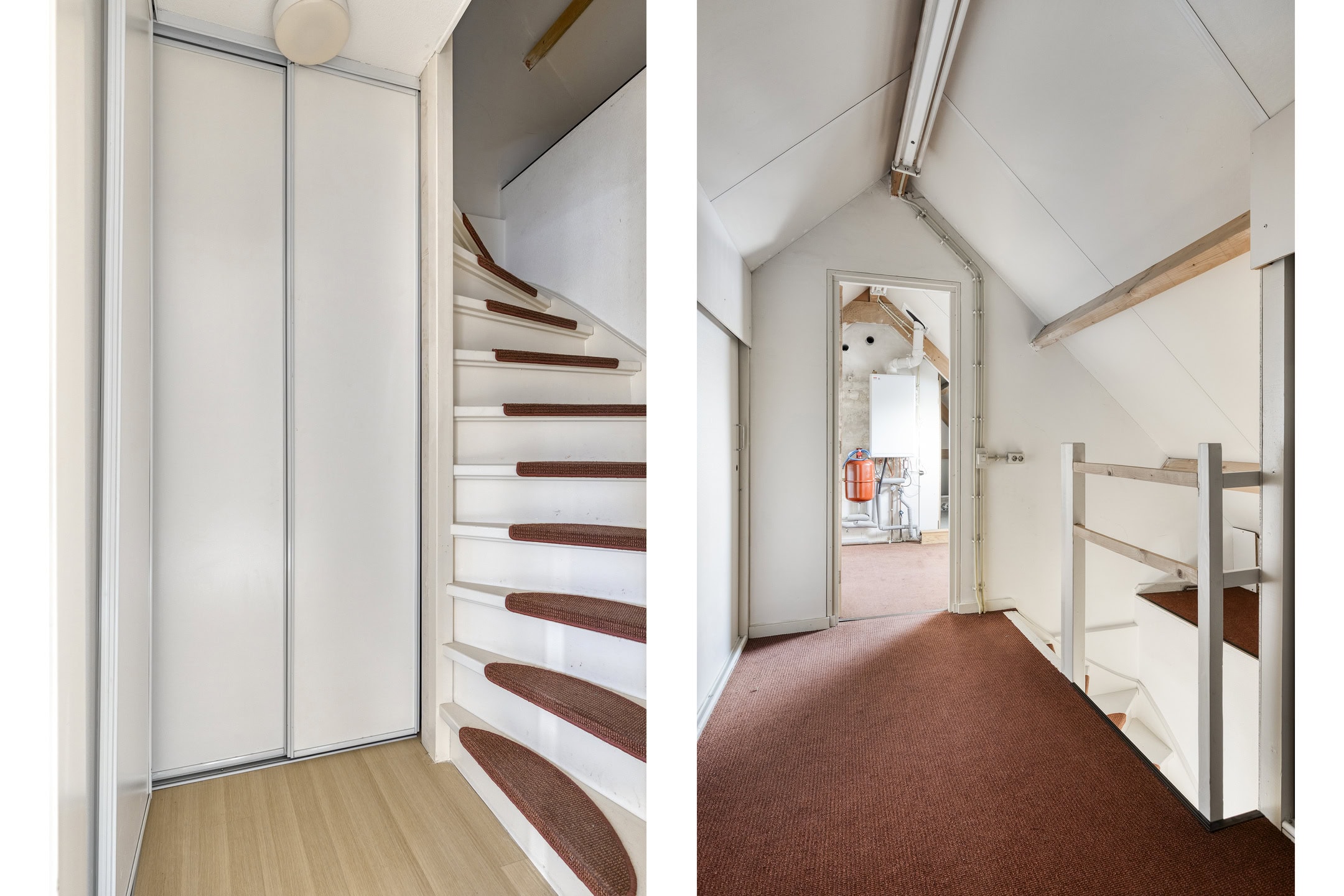 Via een afgesloten ruimte krijg je toegang tot extra bergruimte wat ideaal is voor grote gezinnen die veel spullen hebben. Vanuit deze ruimte vind je tevens een vaste trap naar de zolderverdieping.