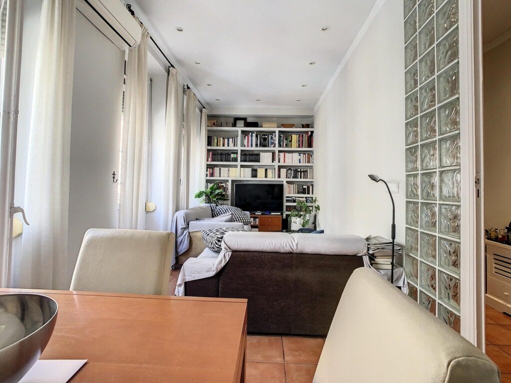 Dankzij de efficiënte indeling kunt u de ruimtes gemakkelijk van elkaar scheiden. Bij binnenkomst in het appartement betreedt u het dag gedeelte, met een ruime en lichte hal die leidt naar de rechthoekige woon-/eetkamer en verder naar de andere kamers van het appartement. Er is een eenvoudige slaapkamer, een keuken, een ruime hoofdslaapkamer en een complete badkamer met douche. In totaal zijn er 2 slaapkamers en 1 badkamer, ideaal voor gezinnen die graag in het centrum van de stad wonen. Het appartement heeft een bijzondere charme, met hoge plafonds, originele houten deuren en ramen die zijn gerestaureerd, wat perfect is voor liefhebbers van geschiedenis.
