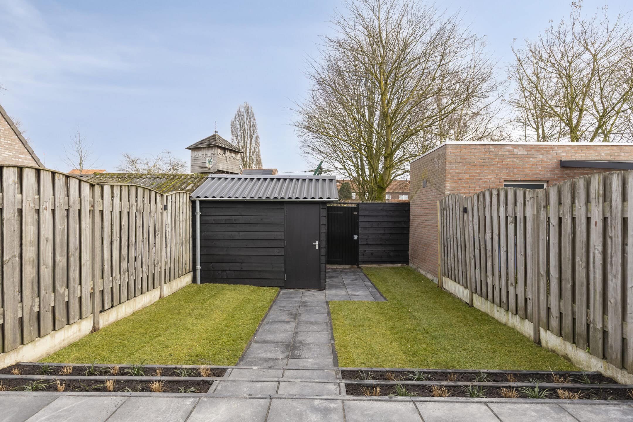 De achtertuin is bereikbaar via de woonkamer en beschikt over een tuinberging en een vrije achterom. Fijn voor fietsen, tuinspullen en gewoon makkelijk in- en uitlopen.
