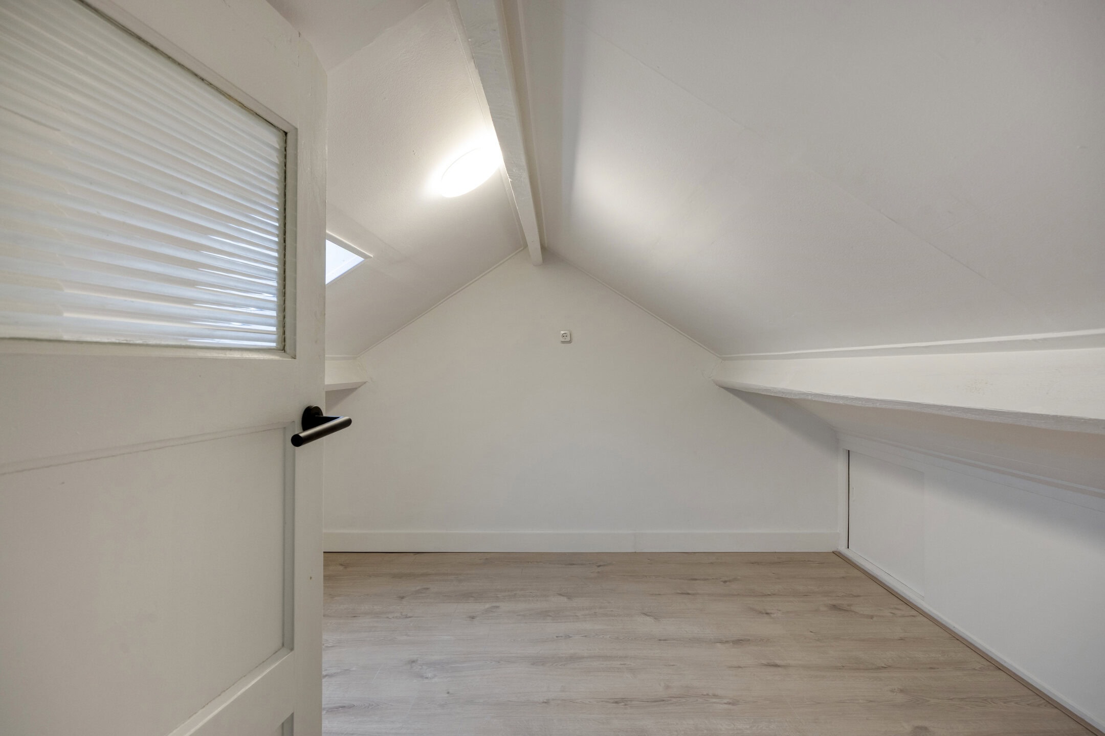 De zolderkamer is een volwaardige extra ruimte met dakvenster en laminaatvloer. Handig als vierde slaapkamer, rustige werkkamer of hobbyruimte. Door het schuine dak worden deze vierkante meters niet meegerekend in het officiële woonoppervlak. Met het plaatsen van een dakkapel vergroot je de stahoogte en ontstaat er extra leefruimte, waardoor ook het woonoppervlak toeneemt.