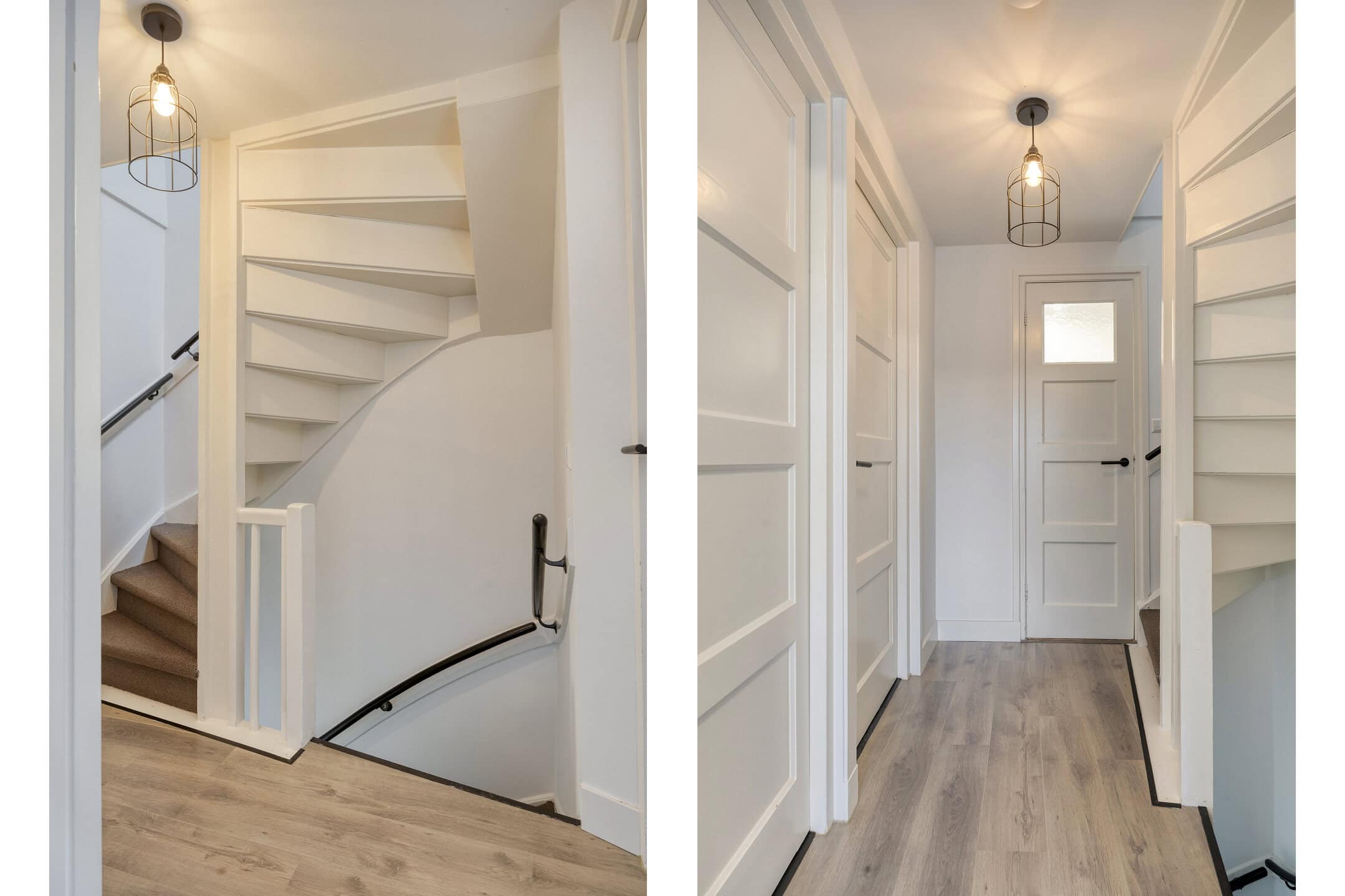 Binnenkomst in een praktische hal met een verdiepte kelderkast: ideaal voor voorraad, tassen of spullen die je uit het zicht wilt houden. De meterkast is vernieuwd en er is een extra bergkast met de unit voor de vloerverwarming.
