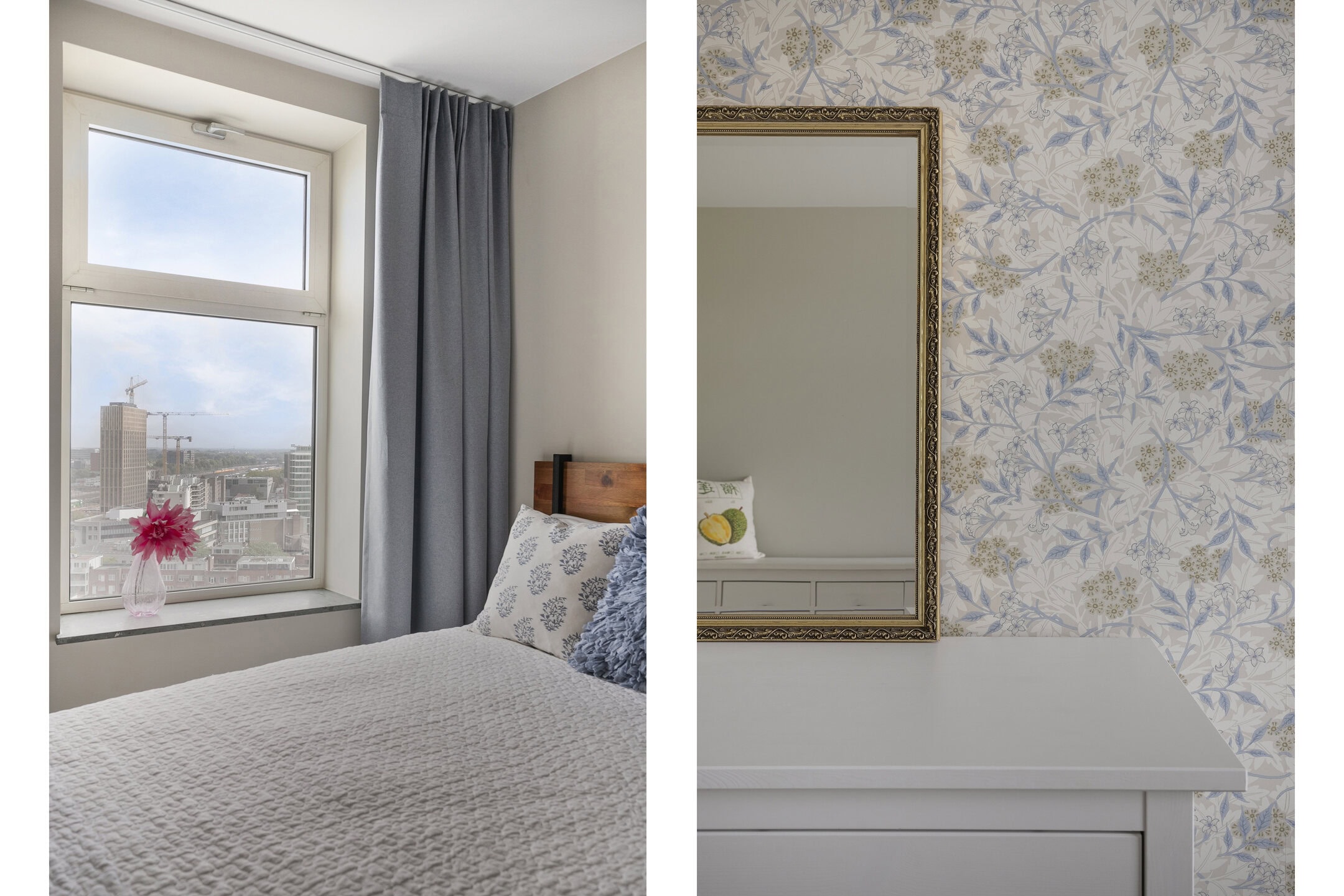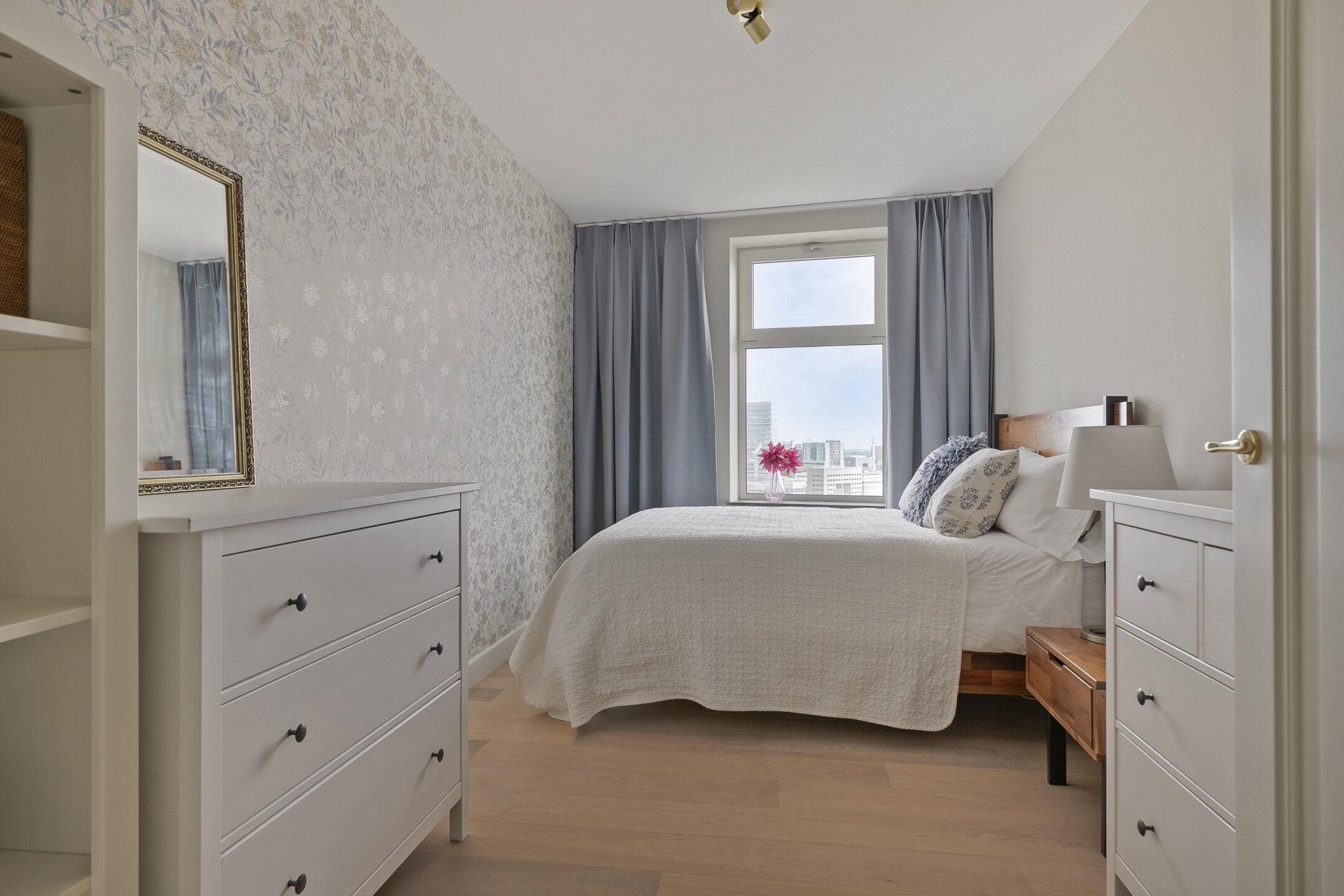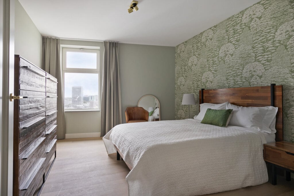 Het appartement telt twee ruime slaapkamers. Beide kamers zijn goed in te delen en bieden volop mogelijkheden voor een garderobe, werkplek of logeerkamer. De grote raampartijen zorgen ook hier voor een prettige lichtinval.