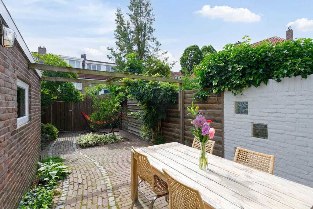 De tuin beschikt over meerdere terrassen, waar je heerlijk kunt genieten (van de zon!). Perceel is grotendeels voorzien van mooie klinkerstenen en vaste volwassen beplanting. In het midden van het perceel is een pergola geplaatst, desgewenst kan hier een doek in geplaatst worden zodat je eenvoudig schaduw creëert.