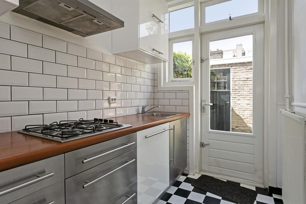 Middels gang te bereiken keuken. Keuken is in rechte opstelling geplaatst en voorzien van kunststof werkblad, vaatwasser, koelkast (uit 2020), 4 pits gasfornuis en afzuigkap. Tevens beschikt de keuken over voldoende opbergruimte.