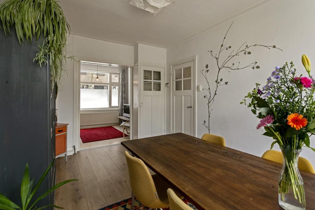 Beide ruimtes zijn voorzien van moderne laminaatvloer en strak stucwerk wanden en plafond, inclusief sierlijst. Gelukkig zijn ook hier de paneeldeuren bewaard gebleven!