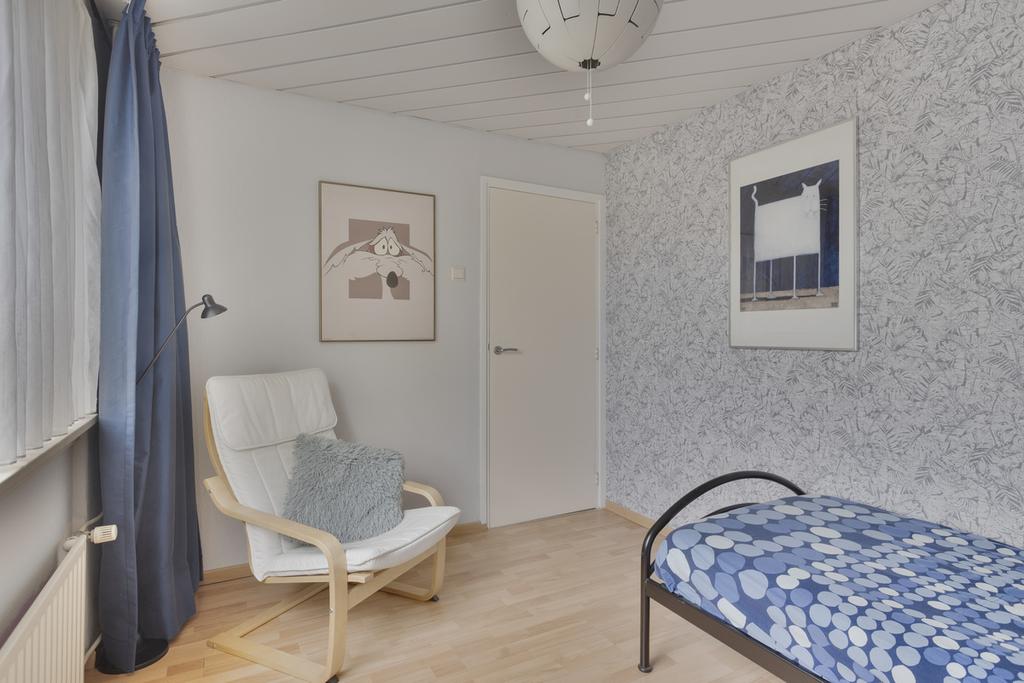 Boven gekomen via de vaste trap, bereik je de tweede verdieping en stap je op een overloop met een handige opbergkast. Aan deze overloop grenst een extra kamer, die niet alleen als slaapkamer kan dienen, maar ook perfect is om in te richten als kantoorruimte.