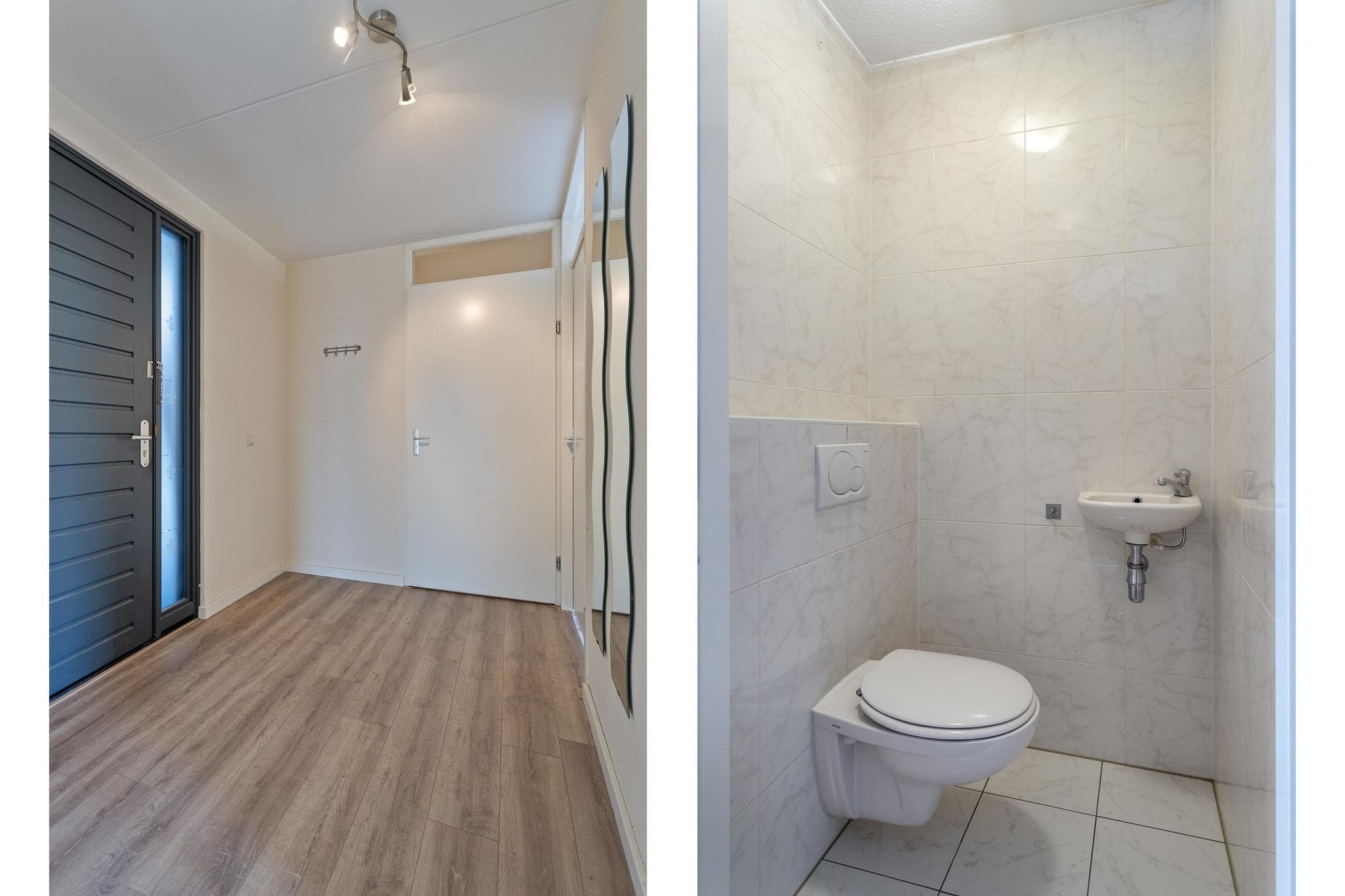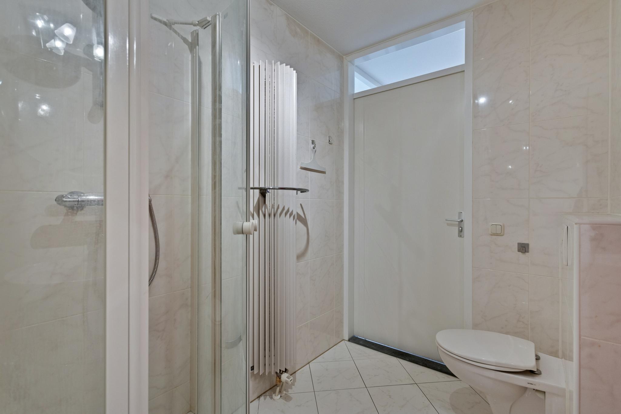 Ook is er een separaat, volledig betegelde toiletruimte met wandcloset en fonteintje in het appartement aanwezig.