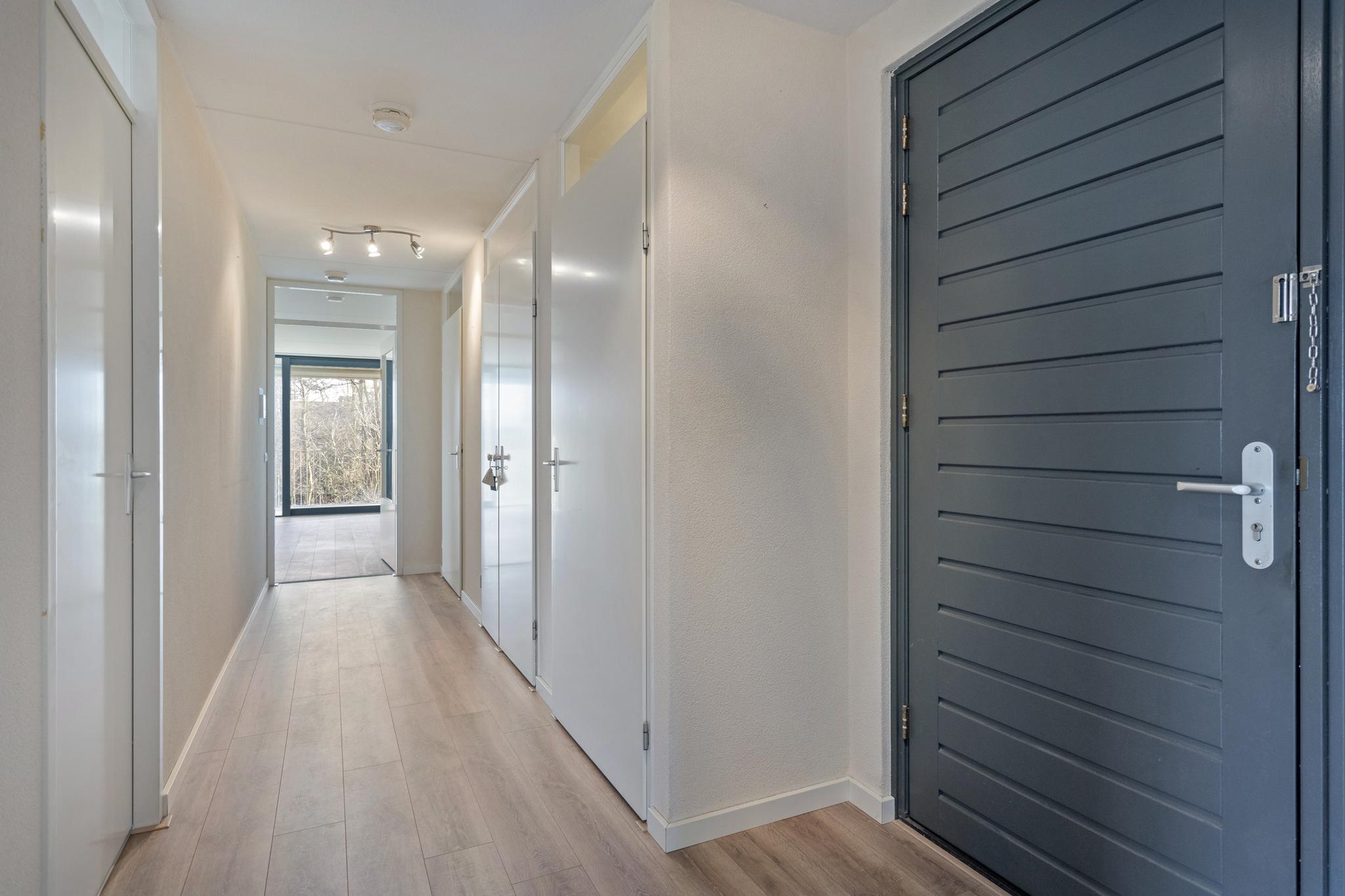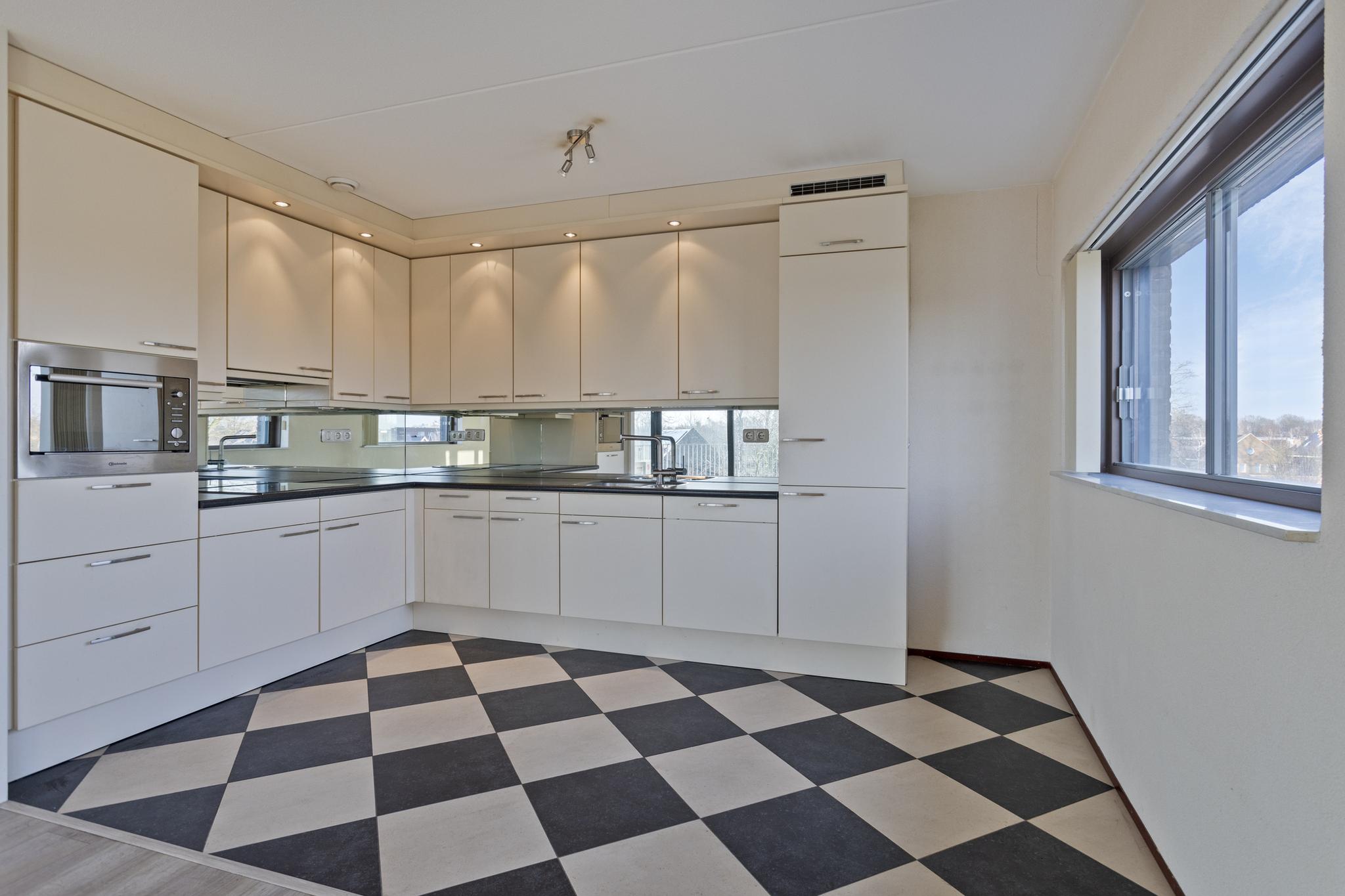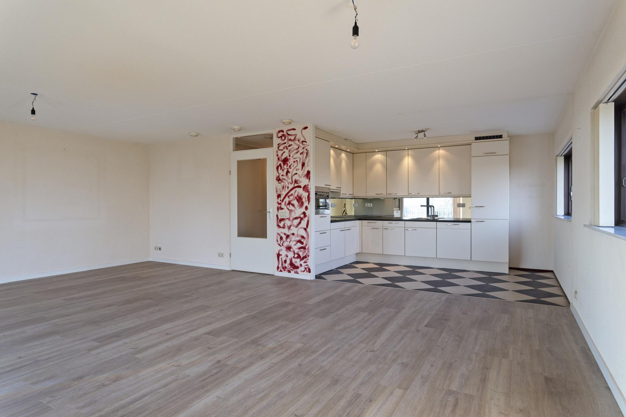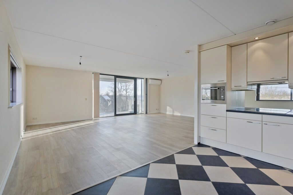 De verrassend ruime woonkamer voorzien van een laminaatvloer inclusief vloerverwarming is het hart van dit appartement. Dankzij de grote raampartijen aan meerdere zijden baadt deze ruimte in het daglicht, wat zorgt voor een heerlijke, lichte sfeer. De aanwezige airco zorgt voor een verkoeling tijdens de warme zomerdagen.