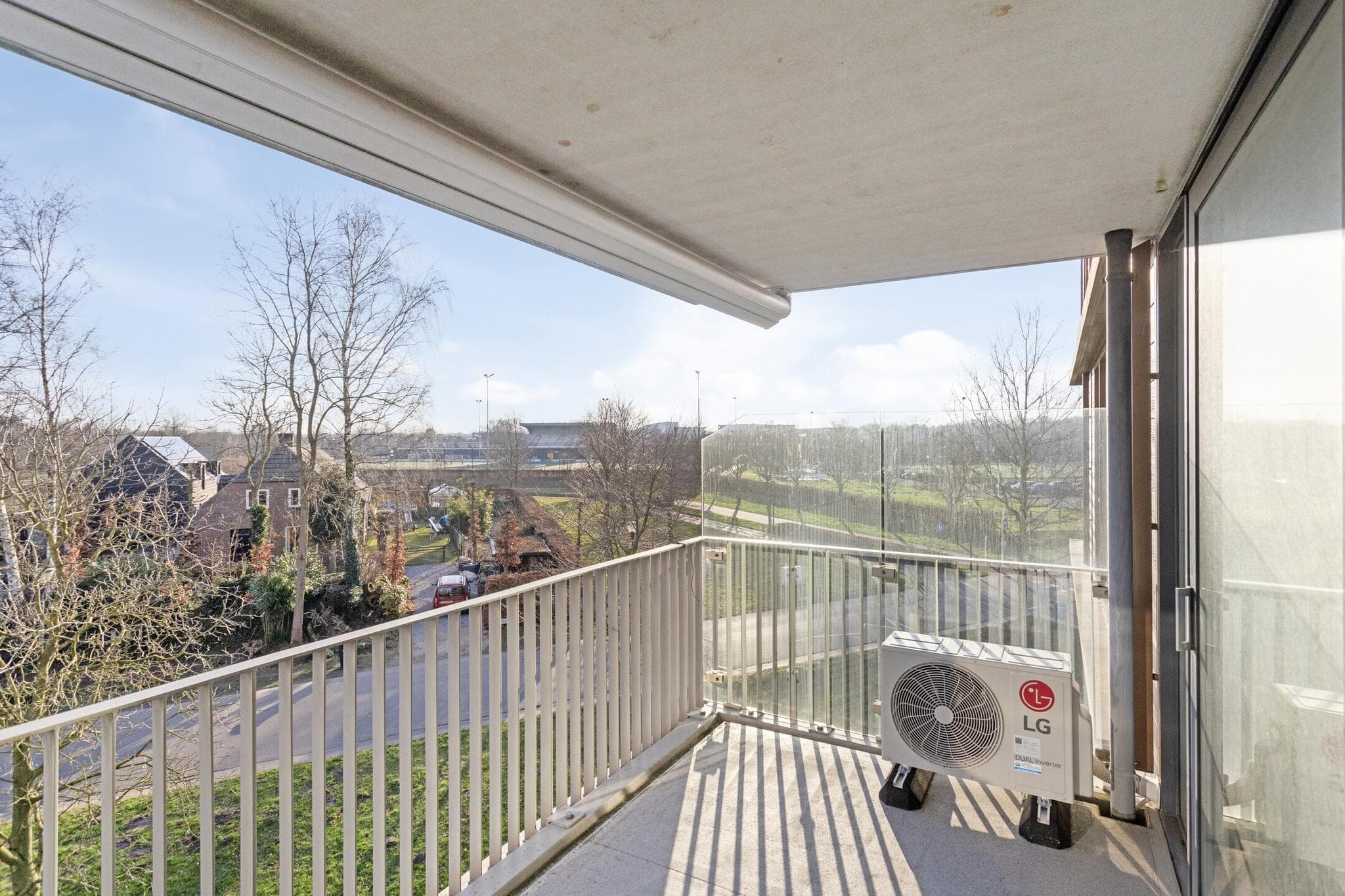 Een schuifpui biedt toegang tot het royale balkon met zonneluifel en op het zuiden gelegen. Hier kunt u volop genieten van de zon en het uitzicht. Een ideale plek om te ontspannen of gezellig te borrelen met vrienden en familie.