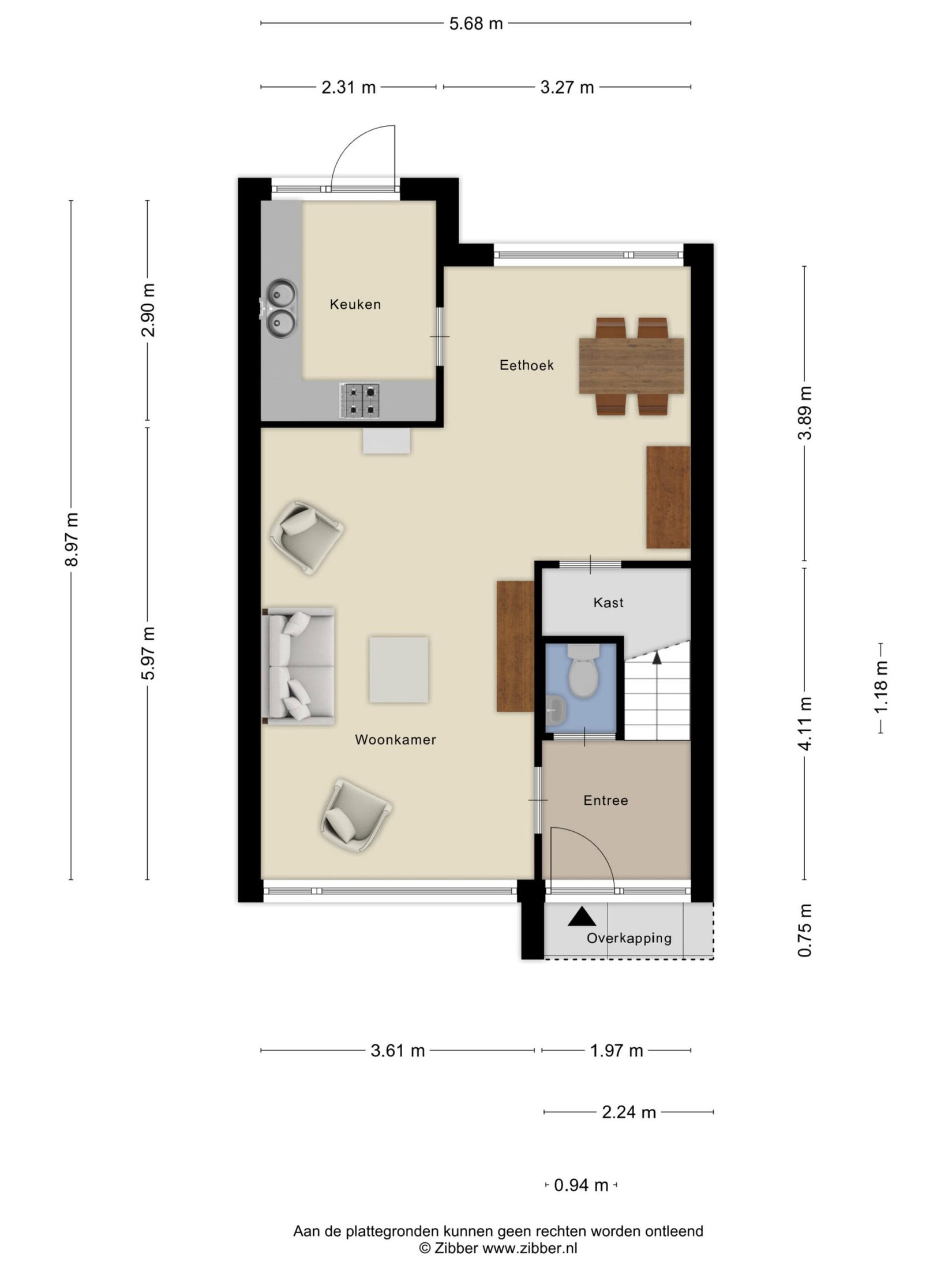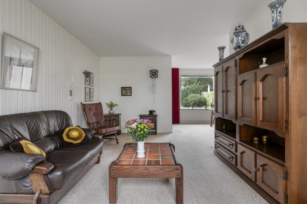 Bij binnenkomst valt direct de royale woonkamer op. Dankzij de grote ramen aan de voor- en achterzijde is de ruimte heerlijk licht, met een prettig uitzicht op zowel de straat met voorgelegen grasborder als de achtertuin. De indeling is praktisch en uitnodigend vanwege de Z-kamer is er ruimte genoeg voor een gezellige zithoek én een ruime eettafel. De houten elementen en neutrale kleuren zorgen voor een warme sfeer die doet denken aan vroeger, terwijl de basis stevig en tijdloos is.
