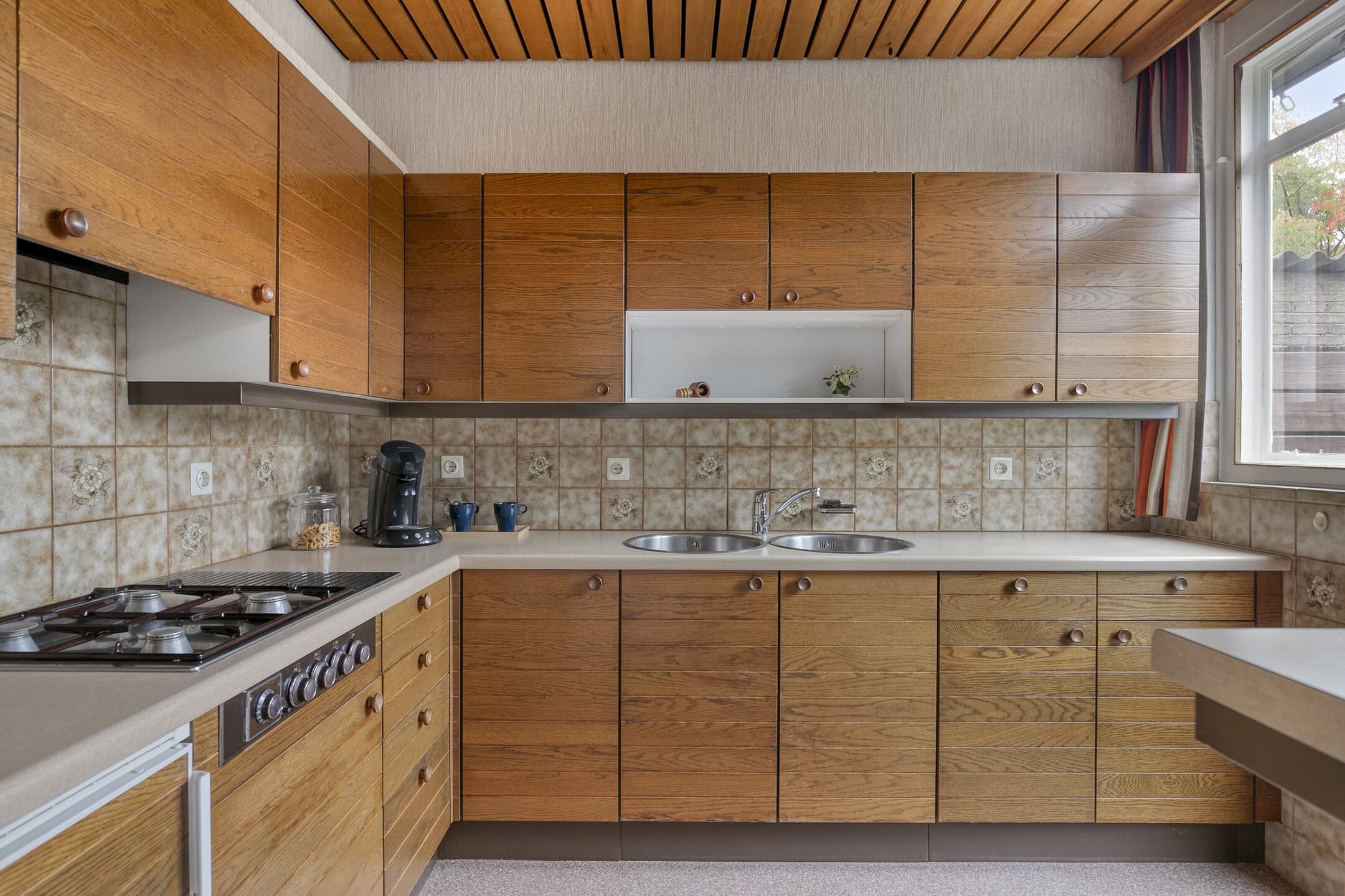 De gesloten keuken bevindt zich aan de achterzijde van het huis en is bereikbaar vanuit de woonkamer. Hier is alles aanwezig om direct te gebruiken, maar het is ook een ideale plek om te moderniseren. Denk aan een open leefkeuken waar gezelligheid centraal staat.