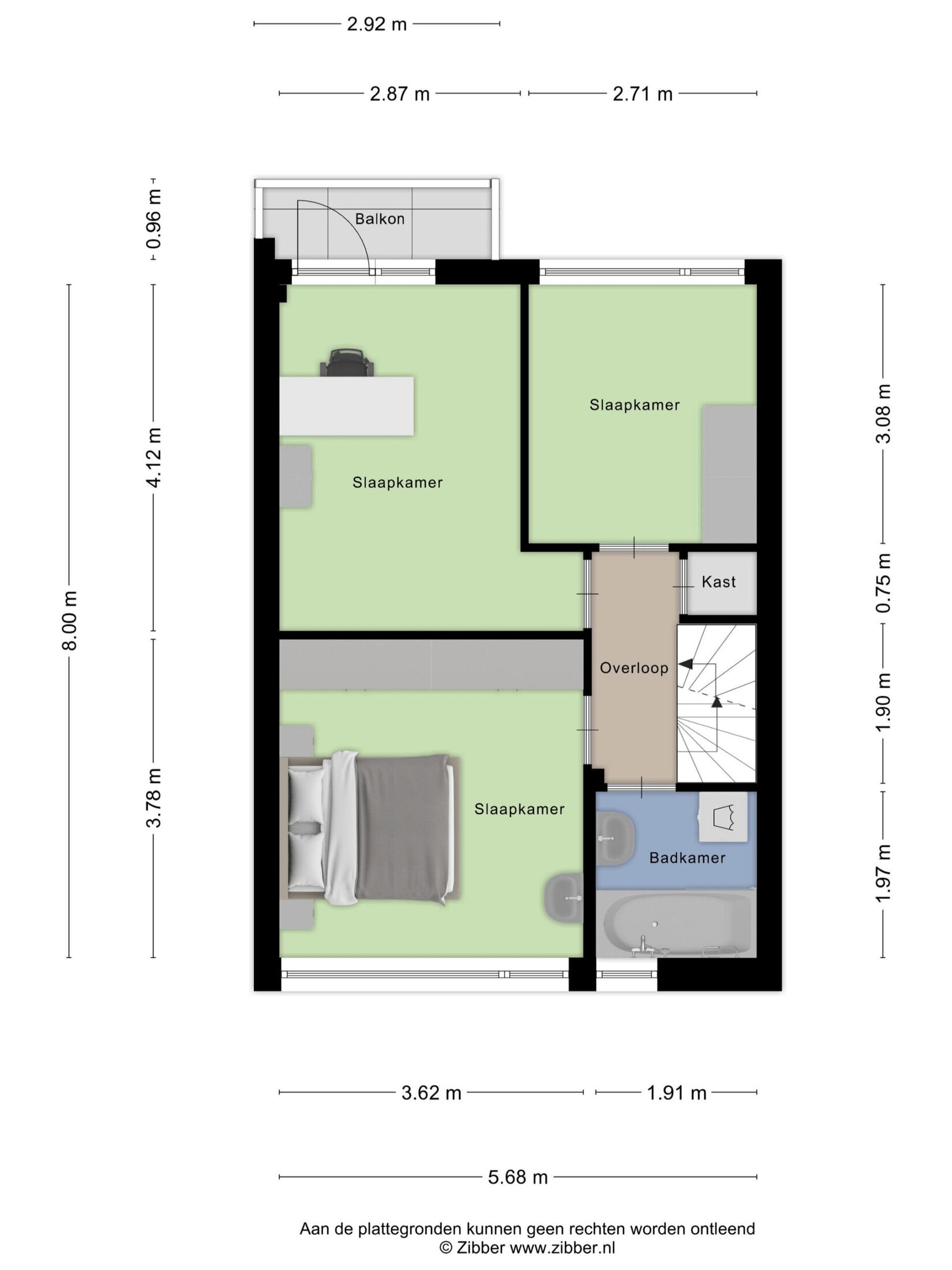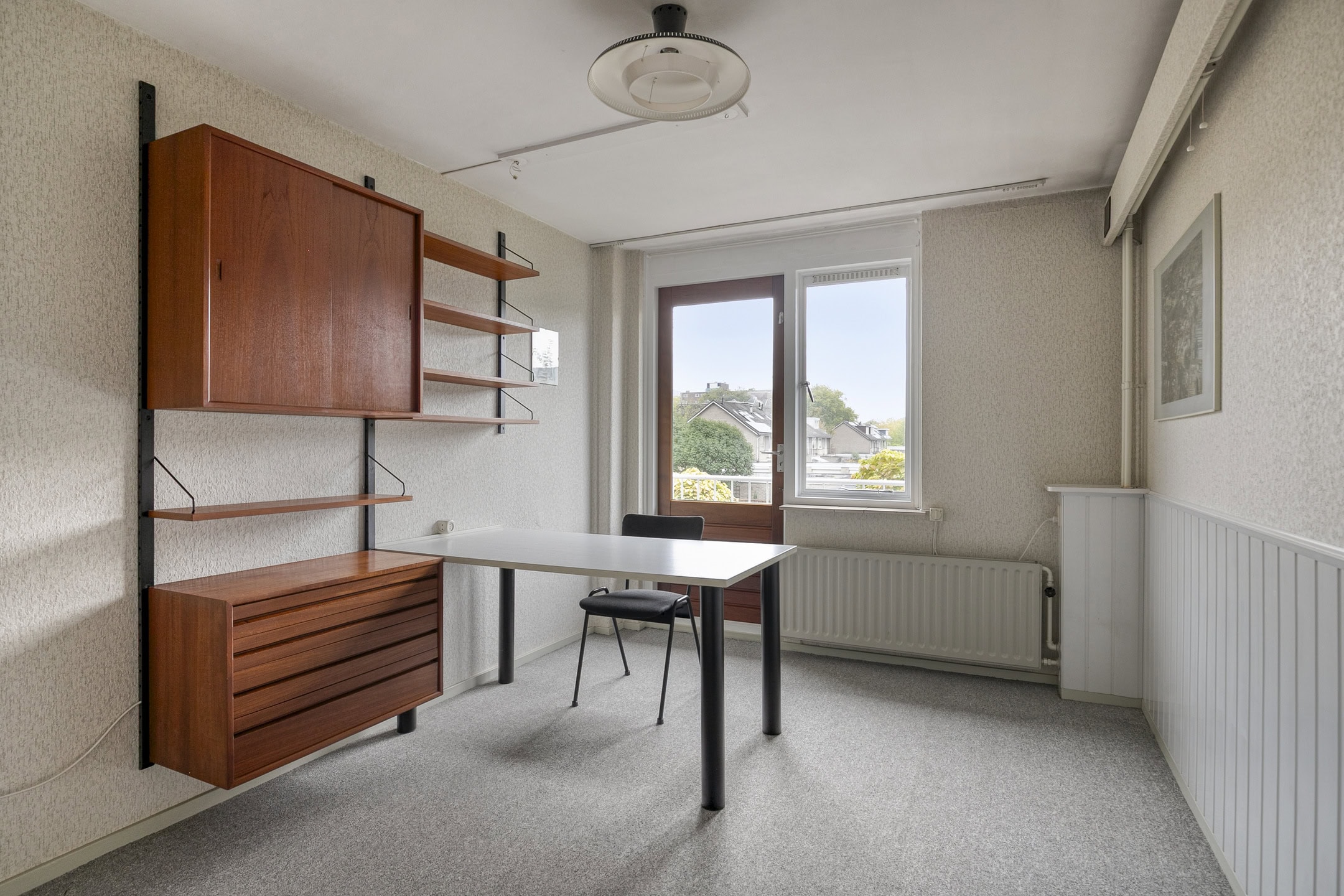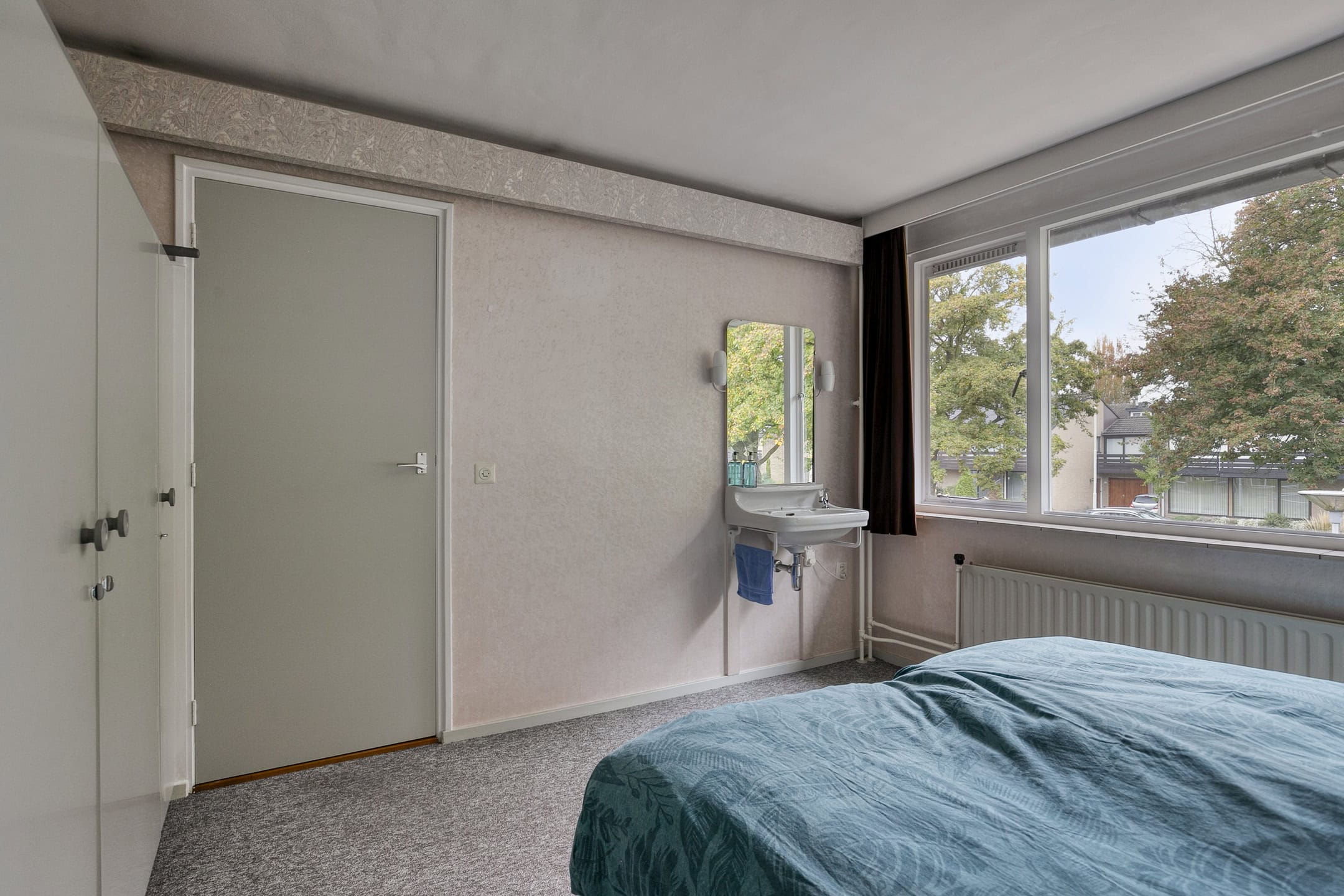 Op de eerste verdieping bevinden zich drie slaapkamers, elk met veel daglicht en een rustige uitstraling. De hoofdslaapkamer aan de voorzijde is bijzonder ruim en heeft een breed raam met uitzicht op het groen van de straat. De tweede kamer biedt toegang tot een klein balkon, ideaal om even buiten te zitten in de ochtendzon. De derde kamer is prima geschikt als werkkamer of logeerkamer. De slaapkamers zijn voorzien van praktische inbouwkasten.