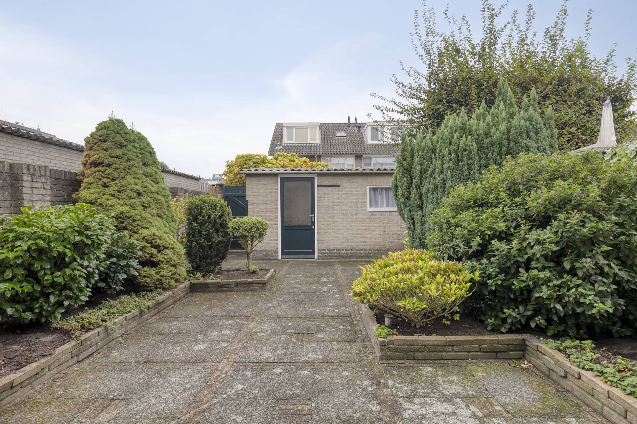 De achtertuin ligt op het zuiden en biedt daardoor de hele dag door zon. De tuin is verzorgd en grotendeels bestraat, met groene borders en een vrijstaande stenen berging. Dankzij de gunstige ligging geniet je hier volop van het buitenleven, van een ontspannen kop koffie in de ochtendzon tot een gezellige barbecue in de avond. De tuin is onderhoudsvriendelijk aangelegd en biedt volop mogelijkheden voor een eigen invulling.
