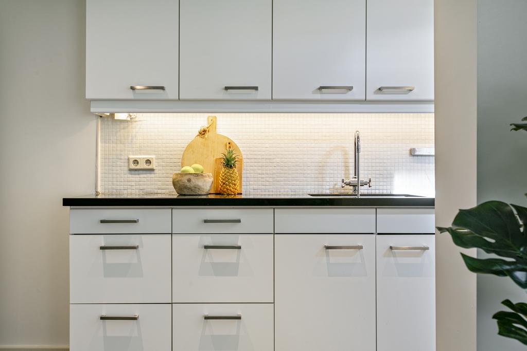 De keuken is geplaatst in een rechte wandopstelling en voorzien van een Smeg 5-pits gasfornuis met grote oven, een afzuigkap, een vaatwasser en een close in boiler. De verdiepte kelderkast biedt praktische opbergruimte. De bijkeuken, welke is voorzien van een tegelvloer, beschikt over de aansluiting voor het witgoed en heeft extra bergruimte.