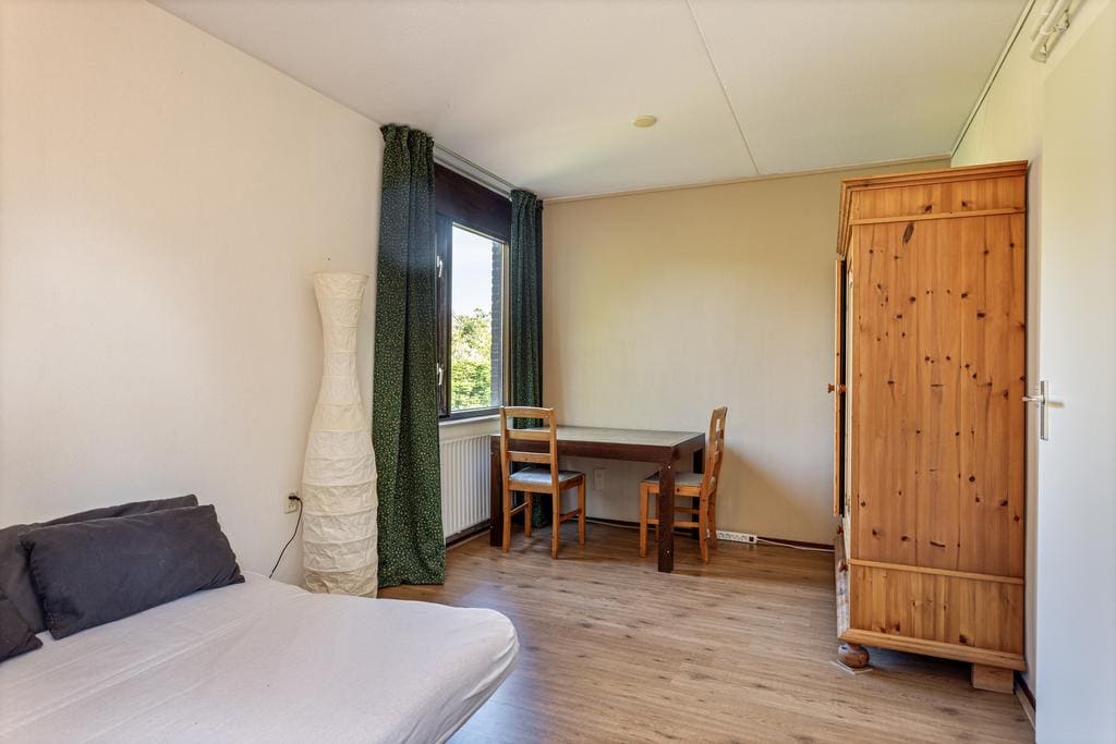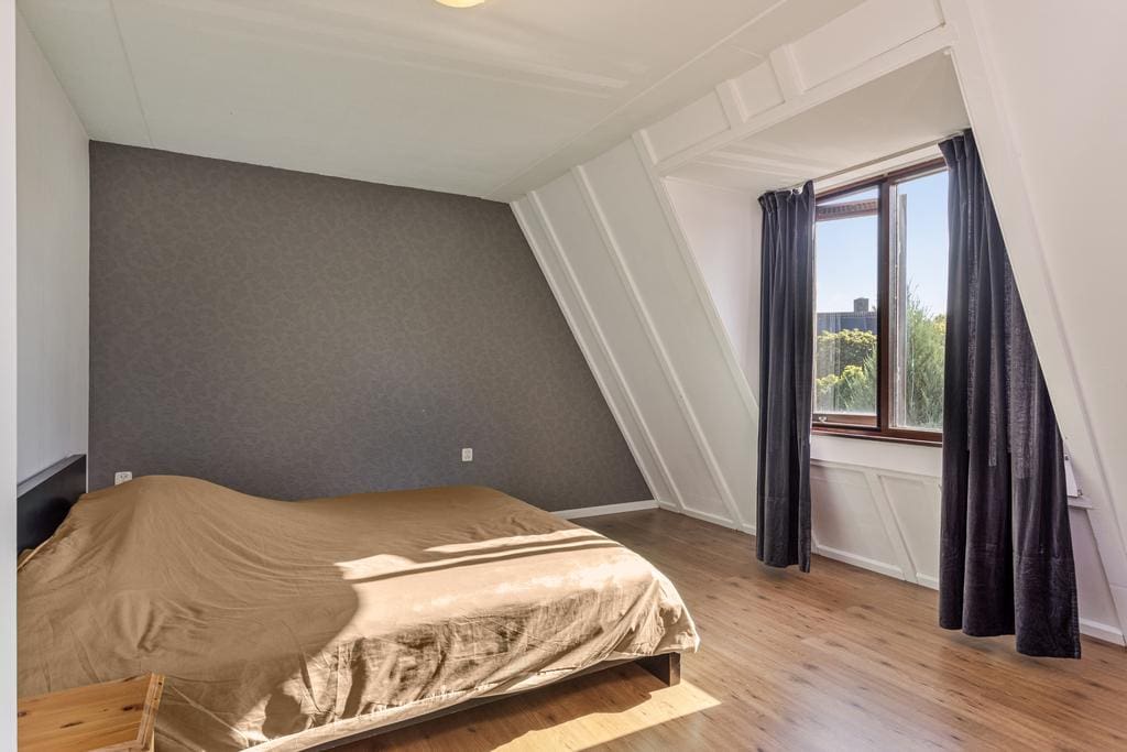 Bedroom 1) located at the front and equipped with modern laminate flooring and is very spacious. There is a dormer window at the front. This bedroom can serve as ware master bedroom. The walls have been recently painted and fitted with trendy wallpaper; Bedroom 2) located at the rear and equipped with modern laminate flooring and is very spacious (formerly 2 bedrooms). This bedroom can also serve as a true master bedroom. If desired, another 2 bedrooms can be created here, so that the house has a total of 4 – spacious – bedrooms. The bathroom is fully tiled and equipped with a toilet, sink, mechanical ventilation, bath and shower.