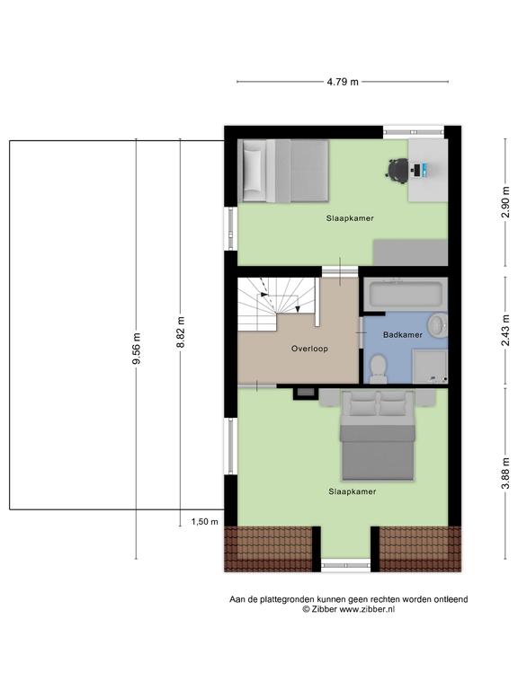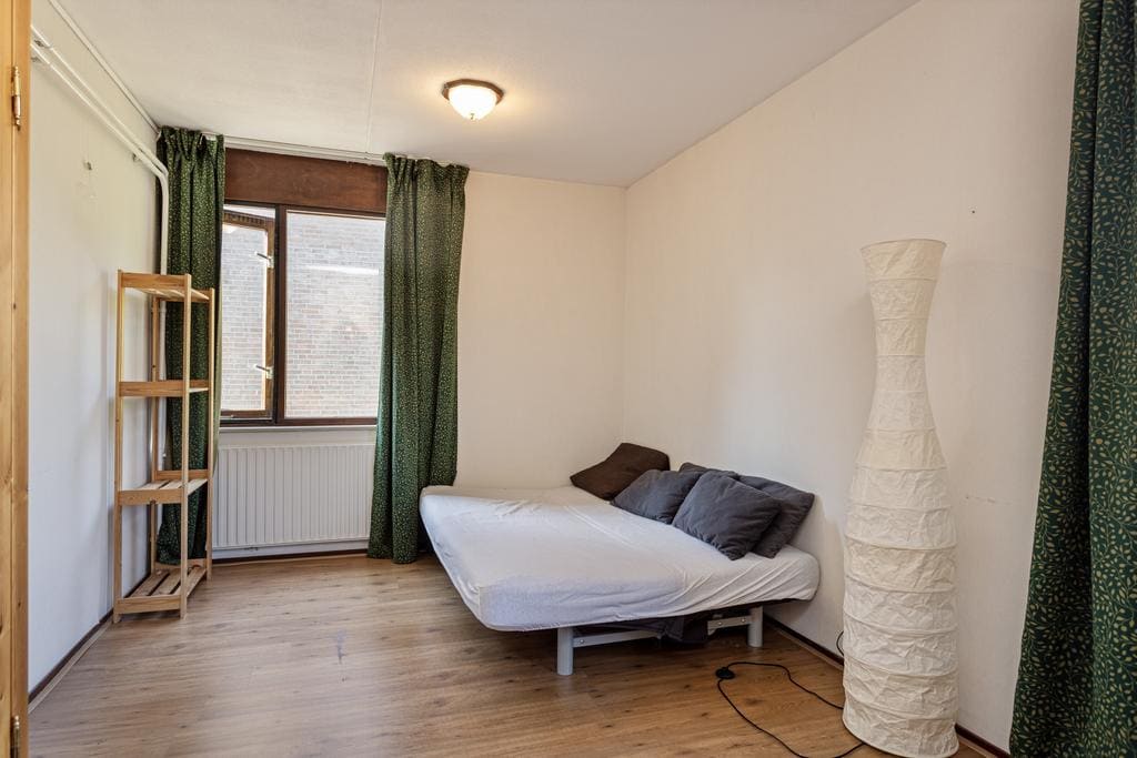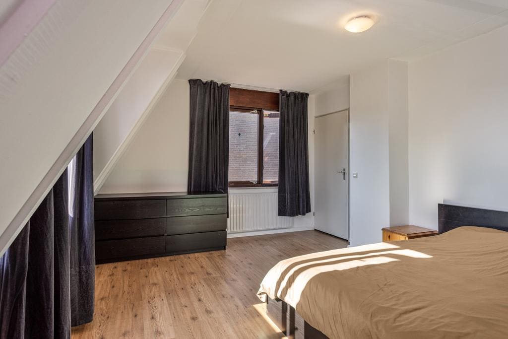 Accessible via a staircase – full – second floor. The spacious attic enjoys a lot of light through the large windows and is ideal for storing things. Spacious extra (bed) room that can be reached through the door. This space is very large and is suitable for multiple purposes. A French balcony has been placed at the rear. This almost ceiling-high window provides pleasant light. By the way, you reach the flat roof through this window. This can be ideally used as a roof terrace.