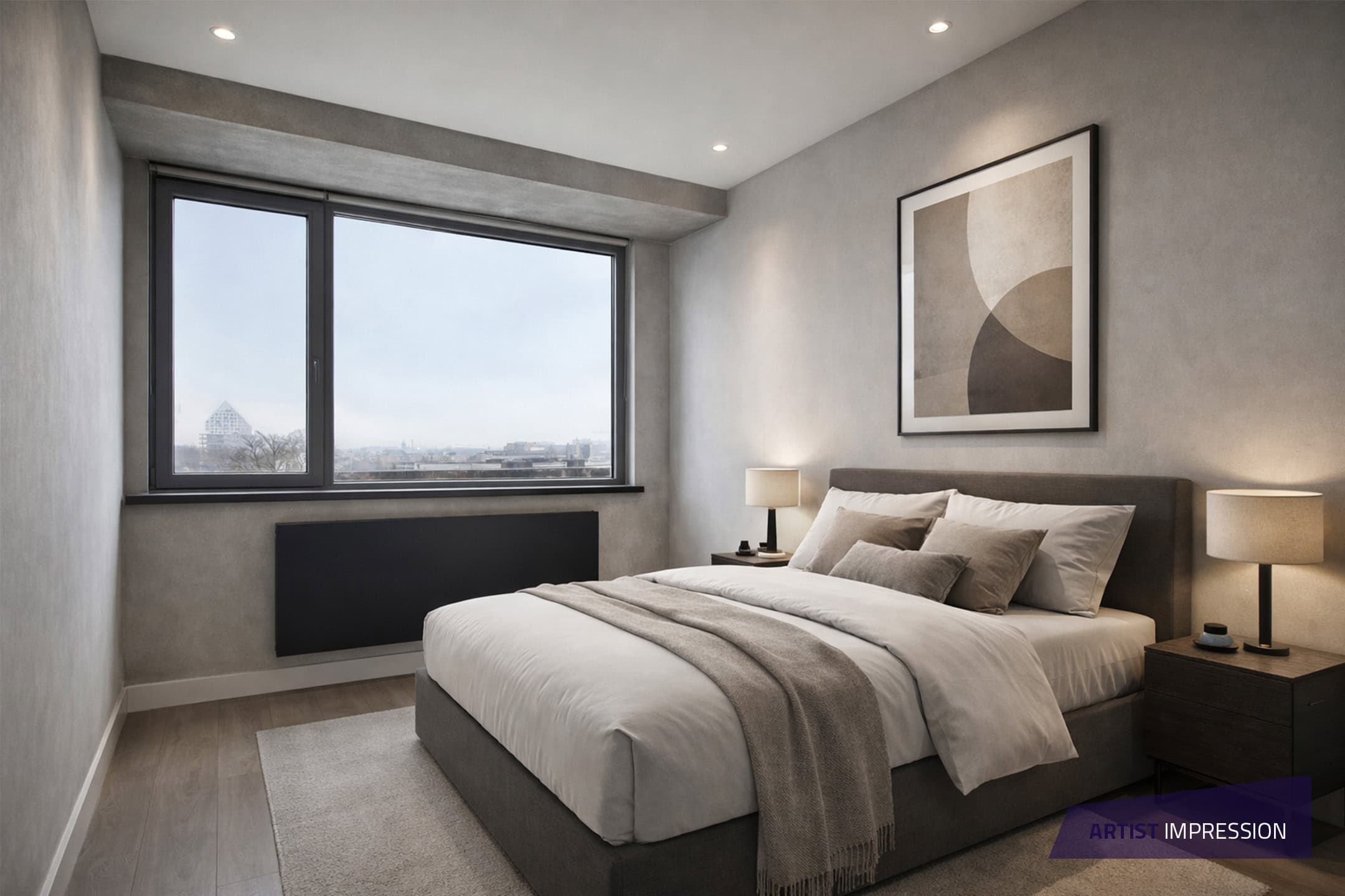 De slaapkamer is rustig en praktisch ingedeeld, met een ingebouwde kast waardoor je minder losse kastruimte nodig hebt. Een fijne plek om je terug te trekken na een dag in de stad.