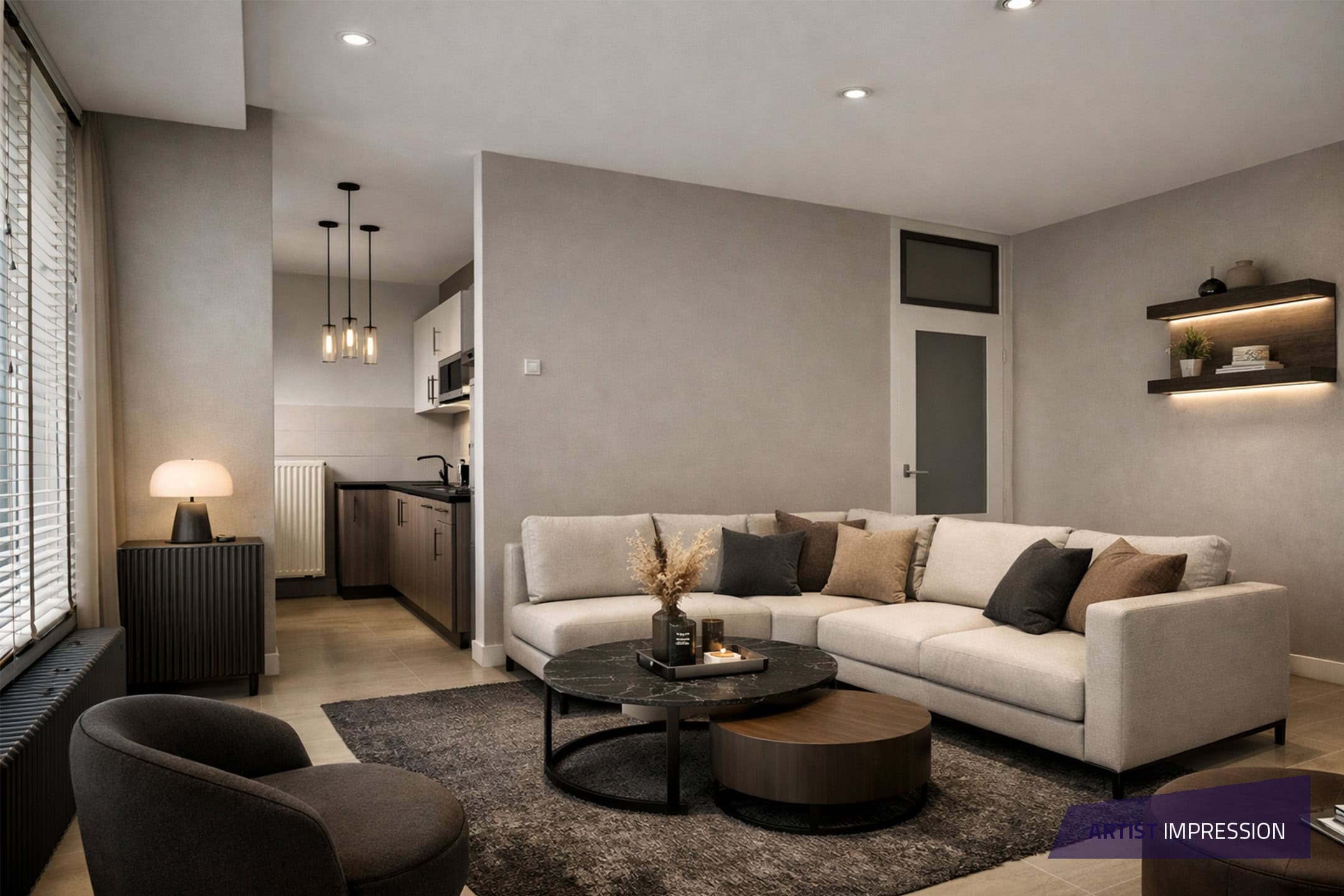 De woonkamer springt eruit door de hoekligging: licht valt van meerdere kanten naar binnen en de ramen geven een vrij, wijds uitzicht over Eindhoven. Er is ruimte voor een comfortabele zithoek én een eettafel, zonder dat het vol aanvoelt. Vanuit de woonkamer stap je zo het overdekte balkon op.