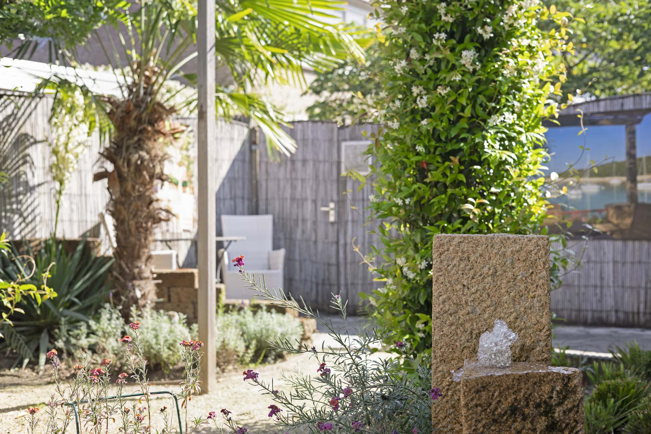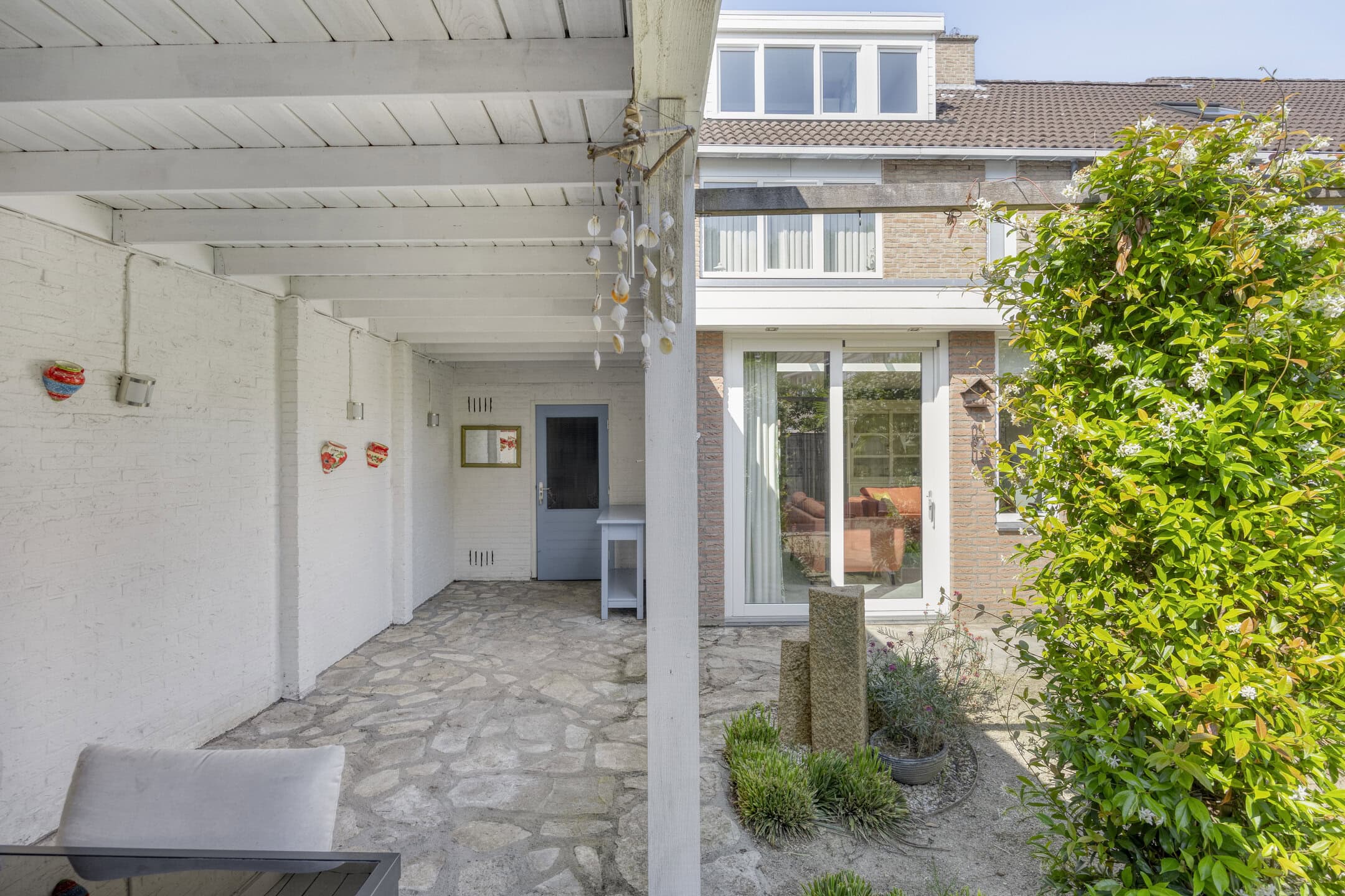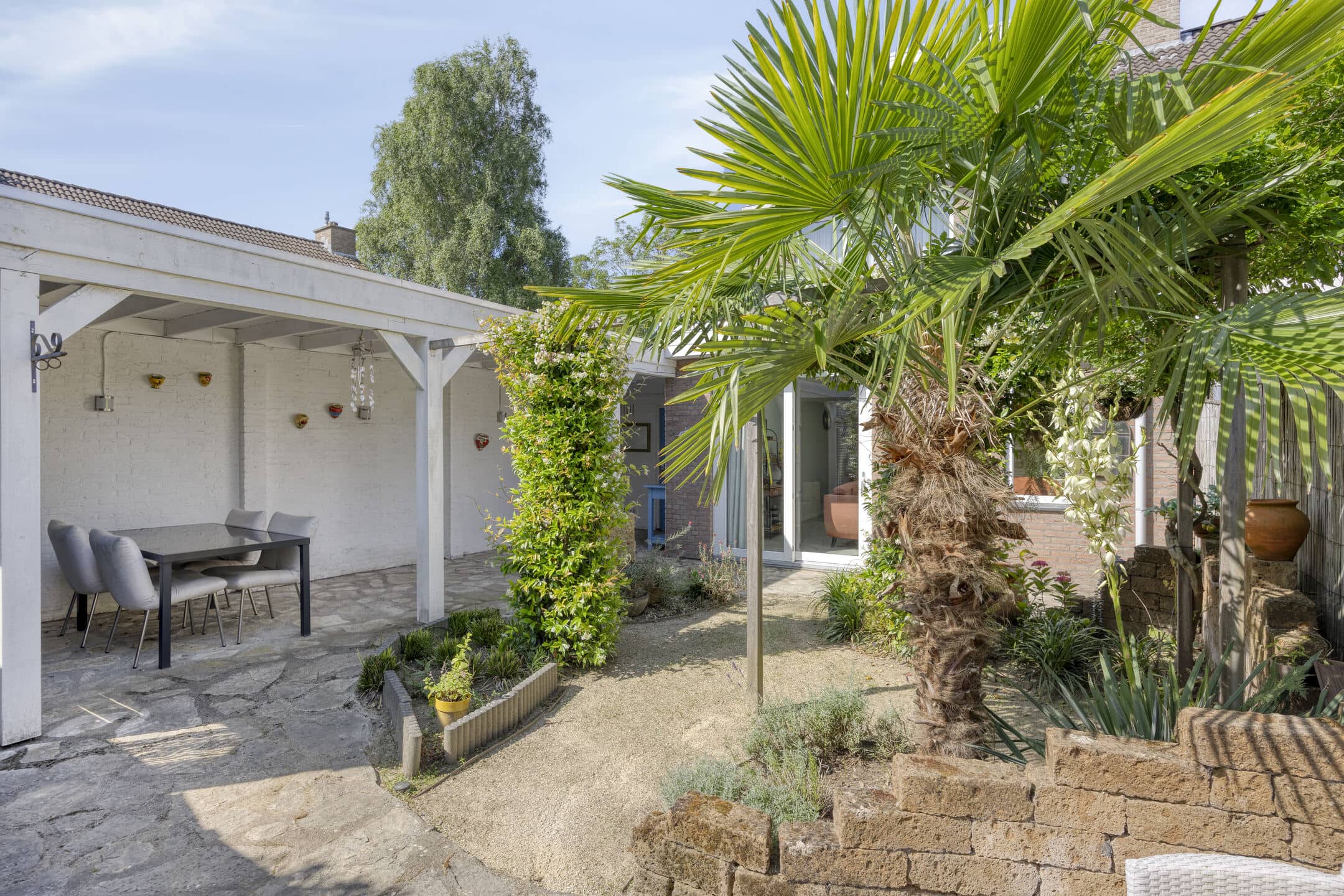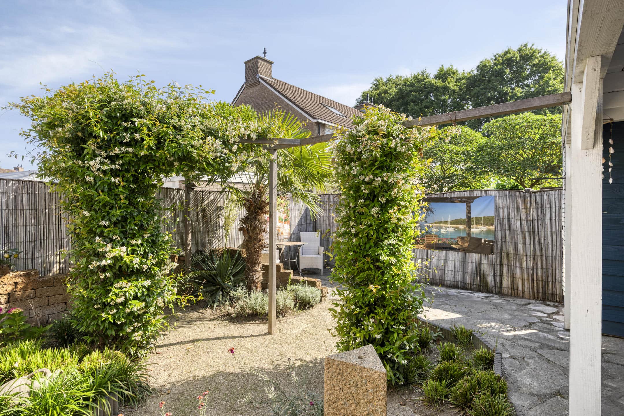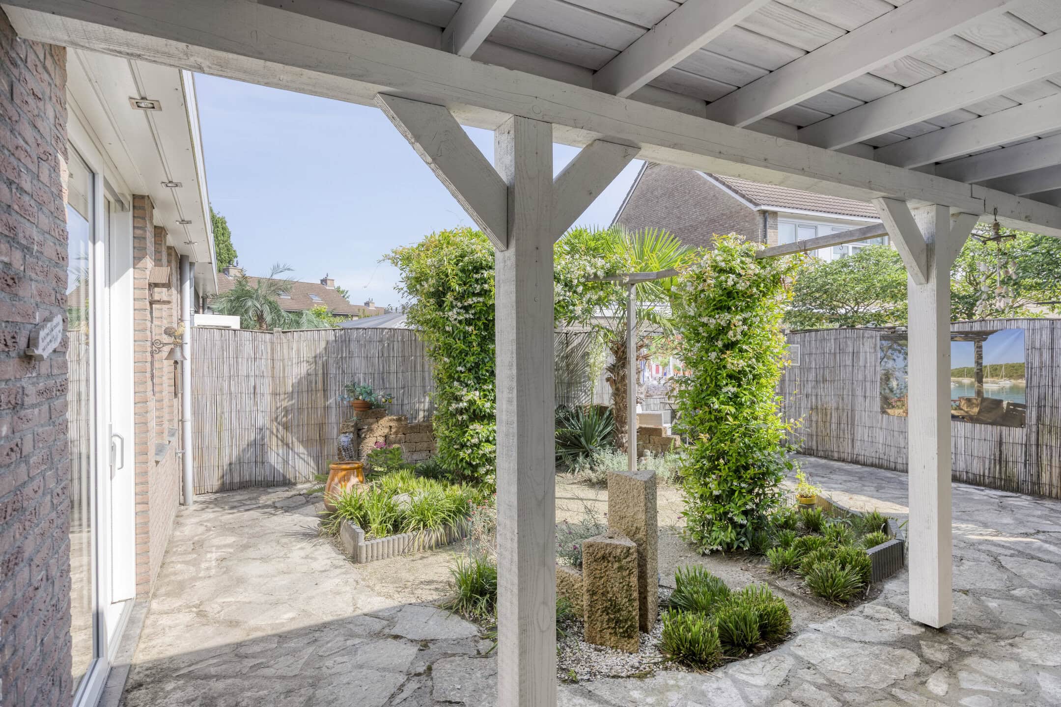 De achtertuin is met zorg aangelegd in een Mediterrane stijl en biedt veel privacy. Een waterpartij en het overdekte terras zorgen voor een fijne sfeer. Achter in de tuin is een praktische overdekte berging, ideaal voor kliko’s of tuingereedschap. Je bereikt de tuin ook via een vrije achterom. De aangebouwde garage beschikt over elektra en een stalen kanteldeur.