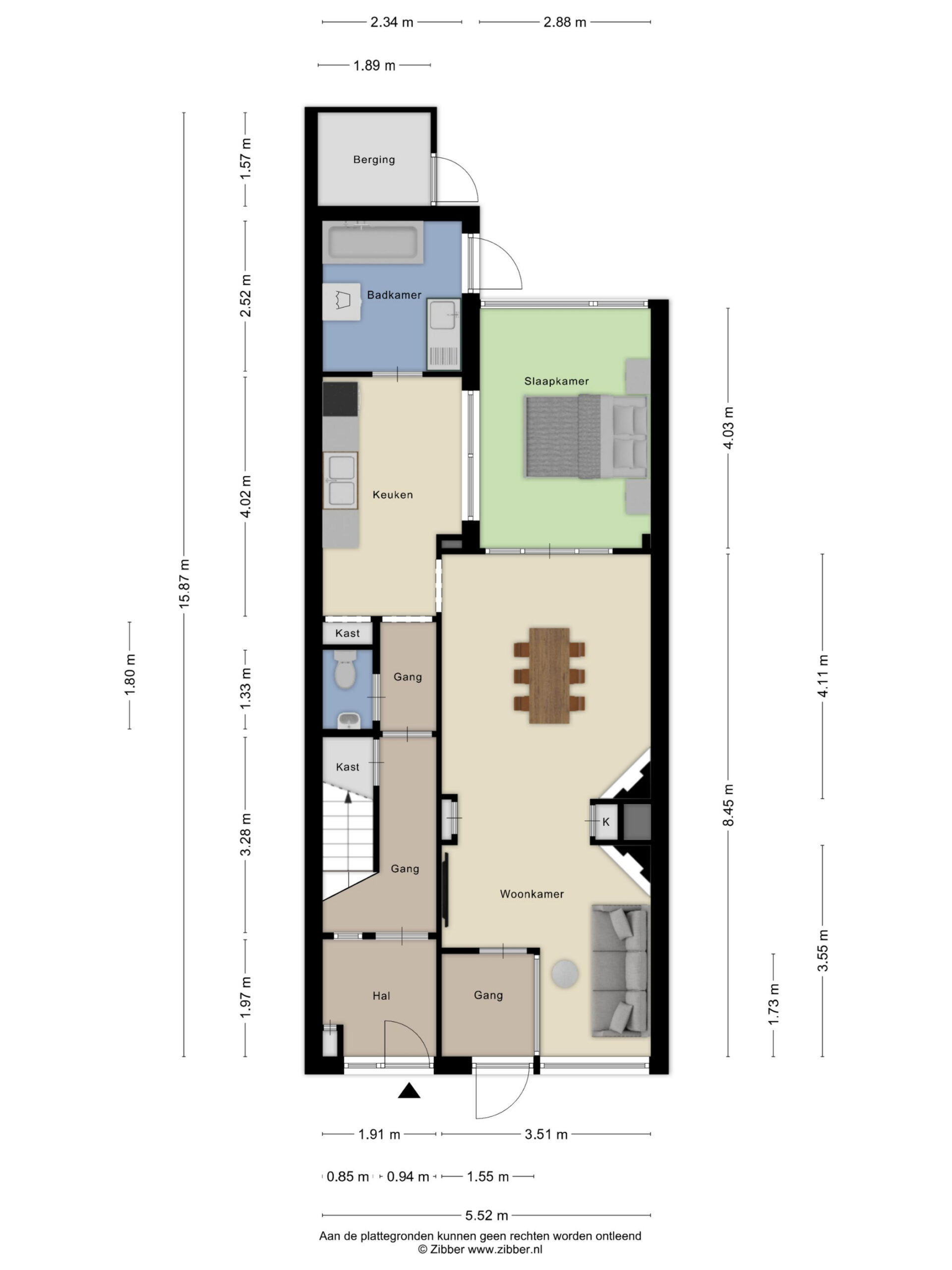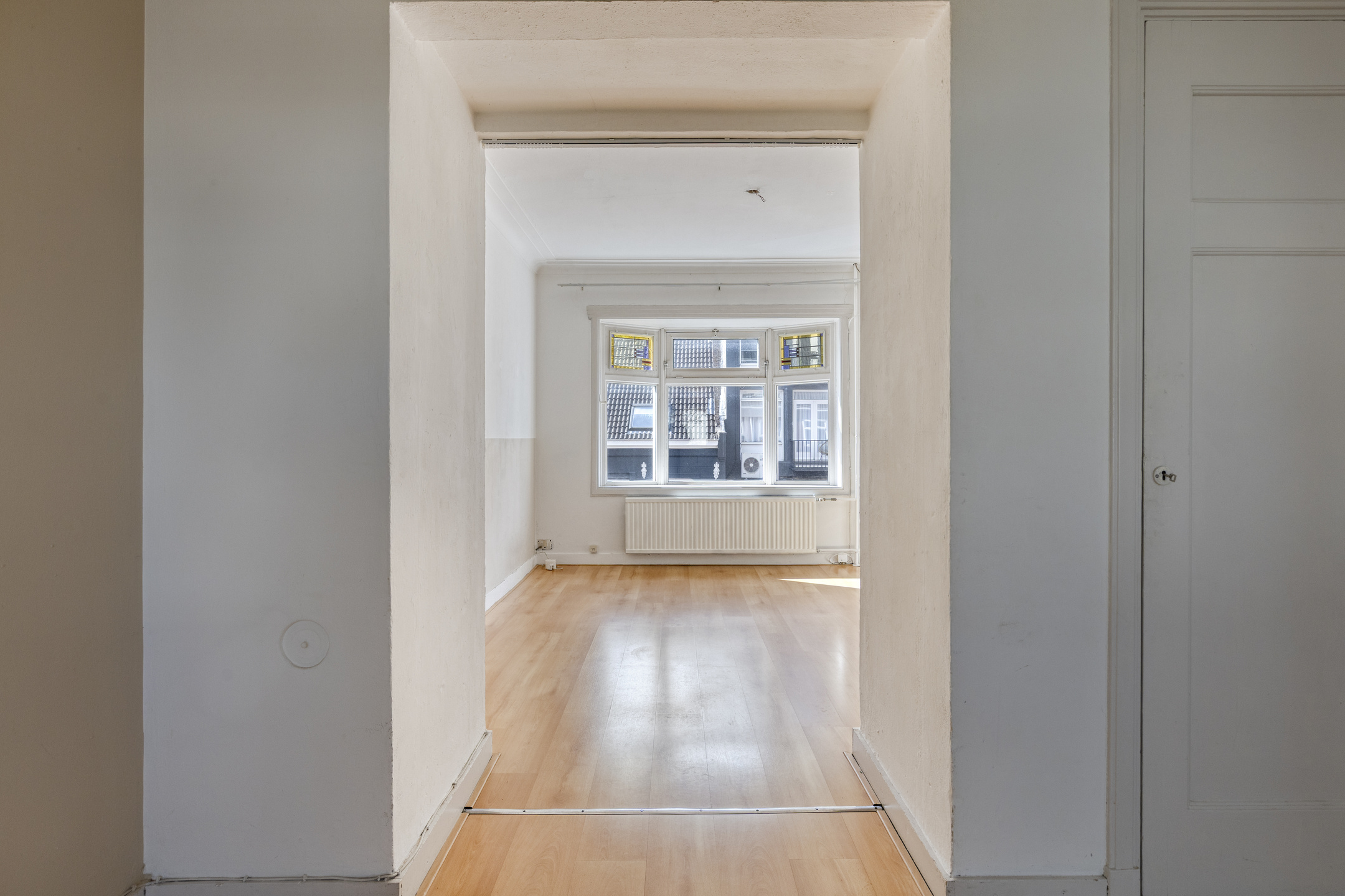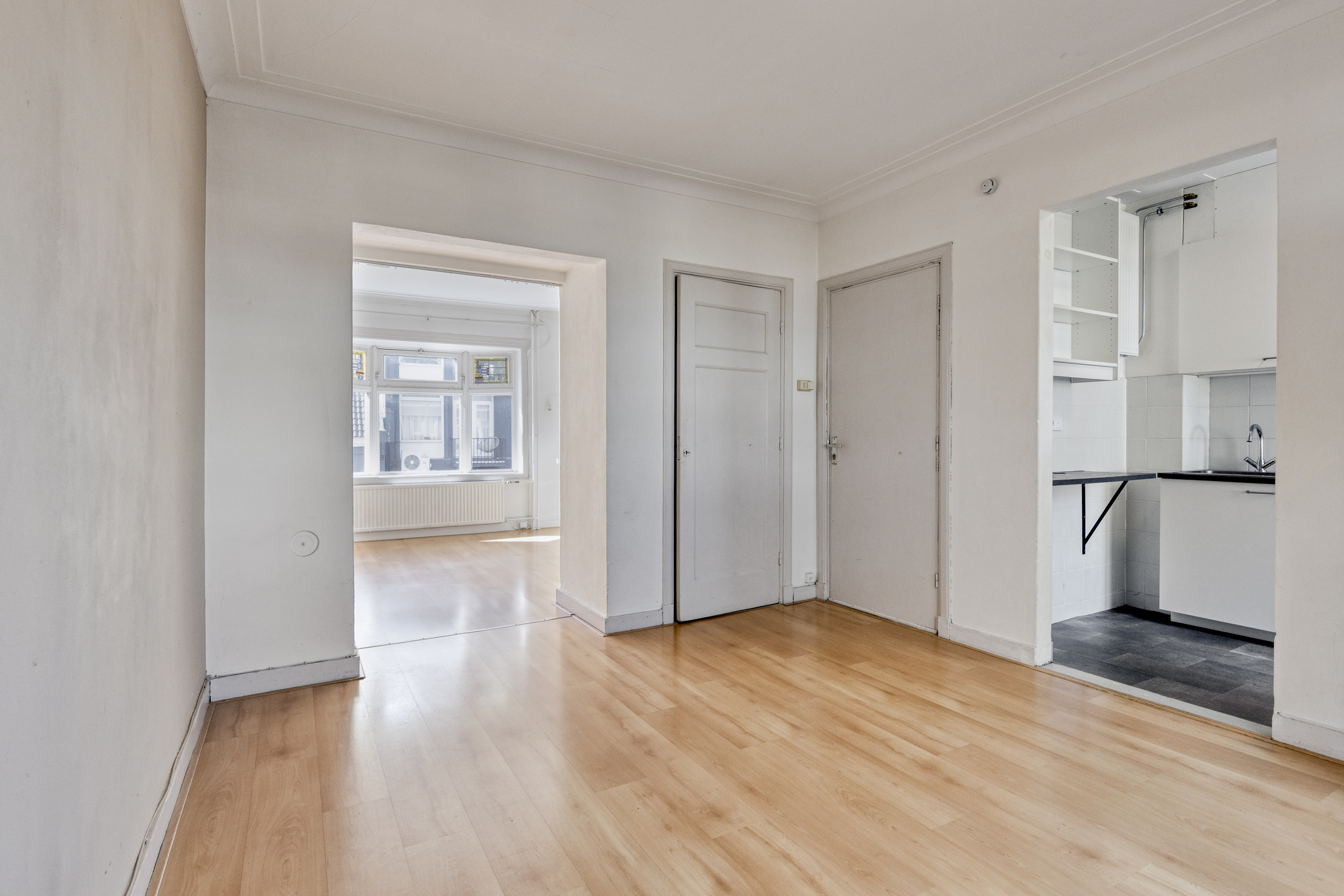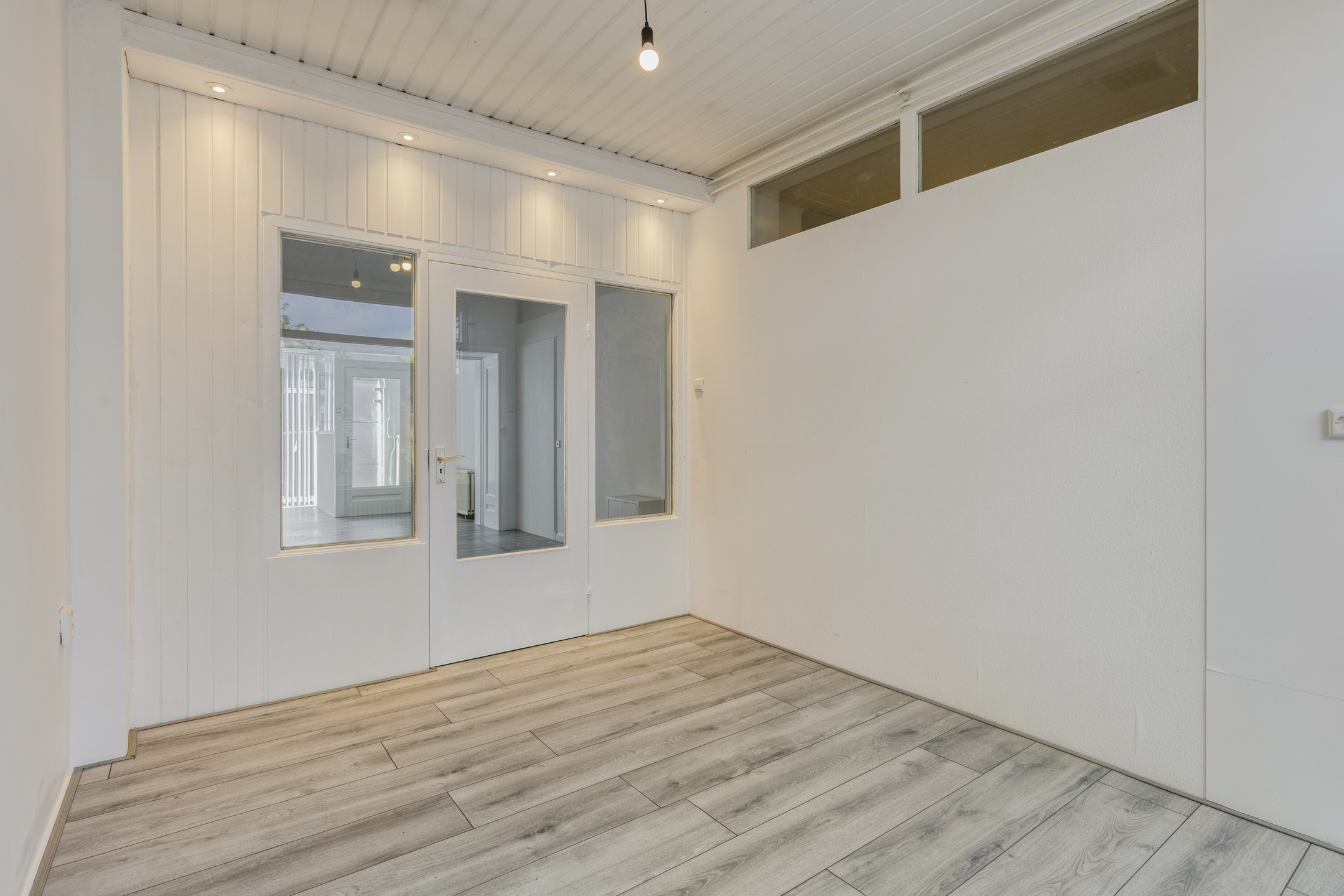 Via de hoofdentree kom je binnen in de hal, waar direct de klassieke opzet van de woning voelbaar is. Hier bevinden zich de trap naar boven, een praktische kelderkast en de toiletruimte. De begane grond heeft een zelfstandige entree. Ideaal wanneer je wonen en werken wil combineren.
