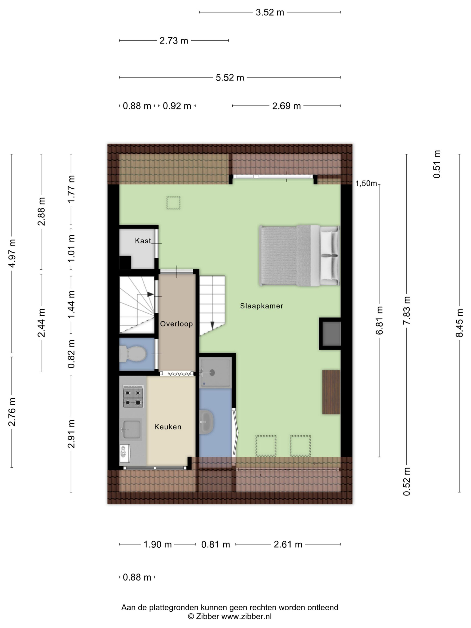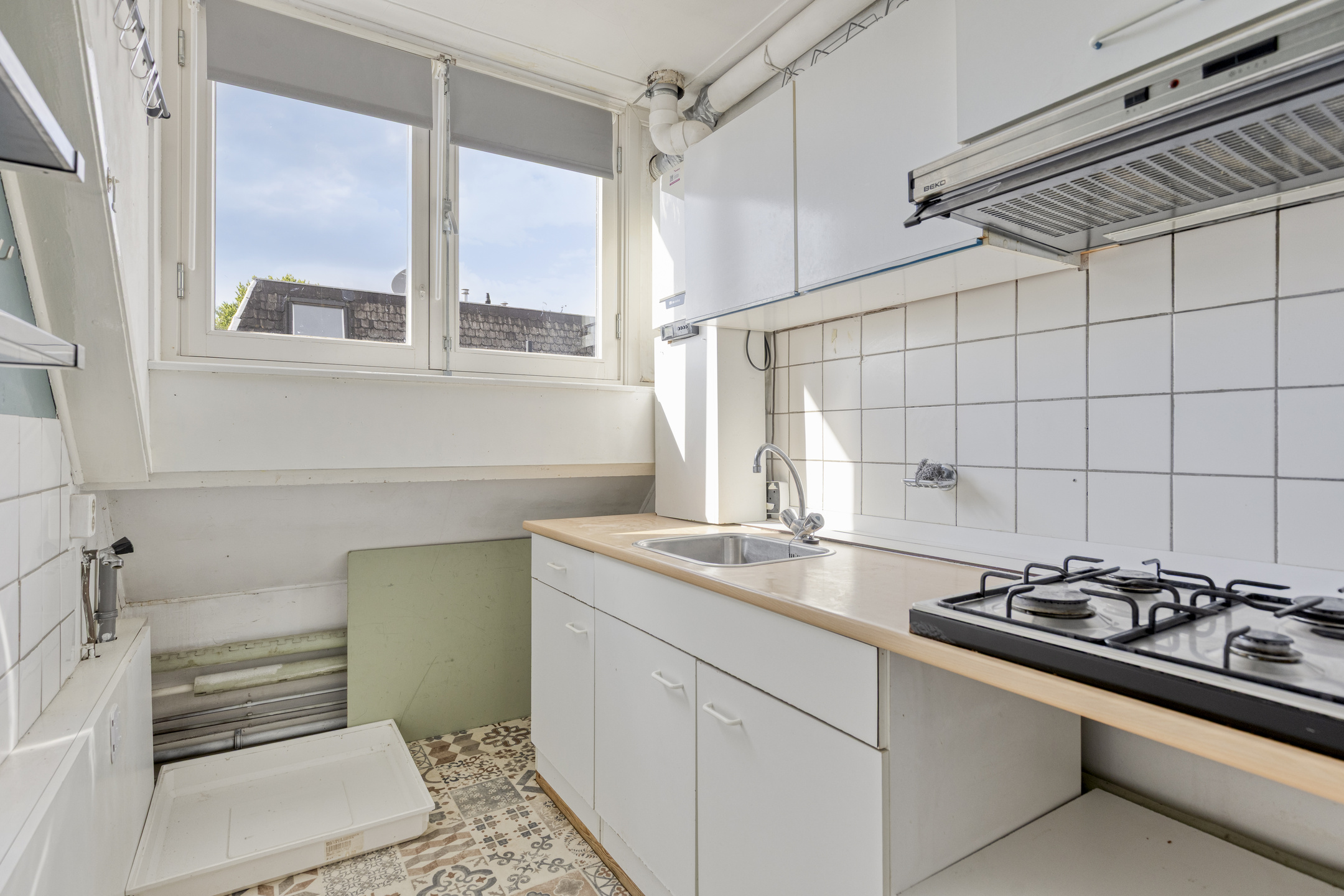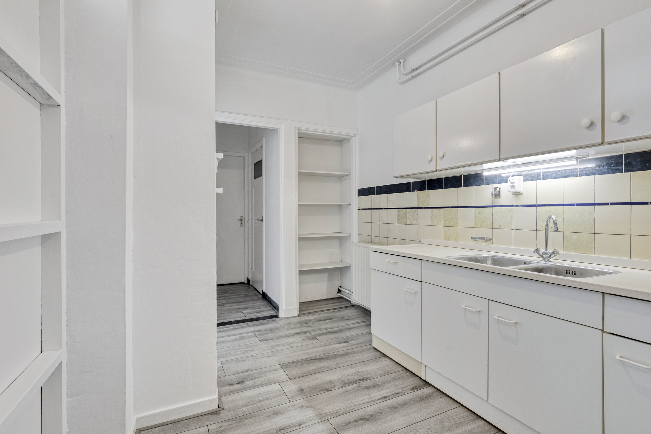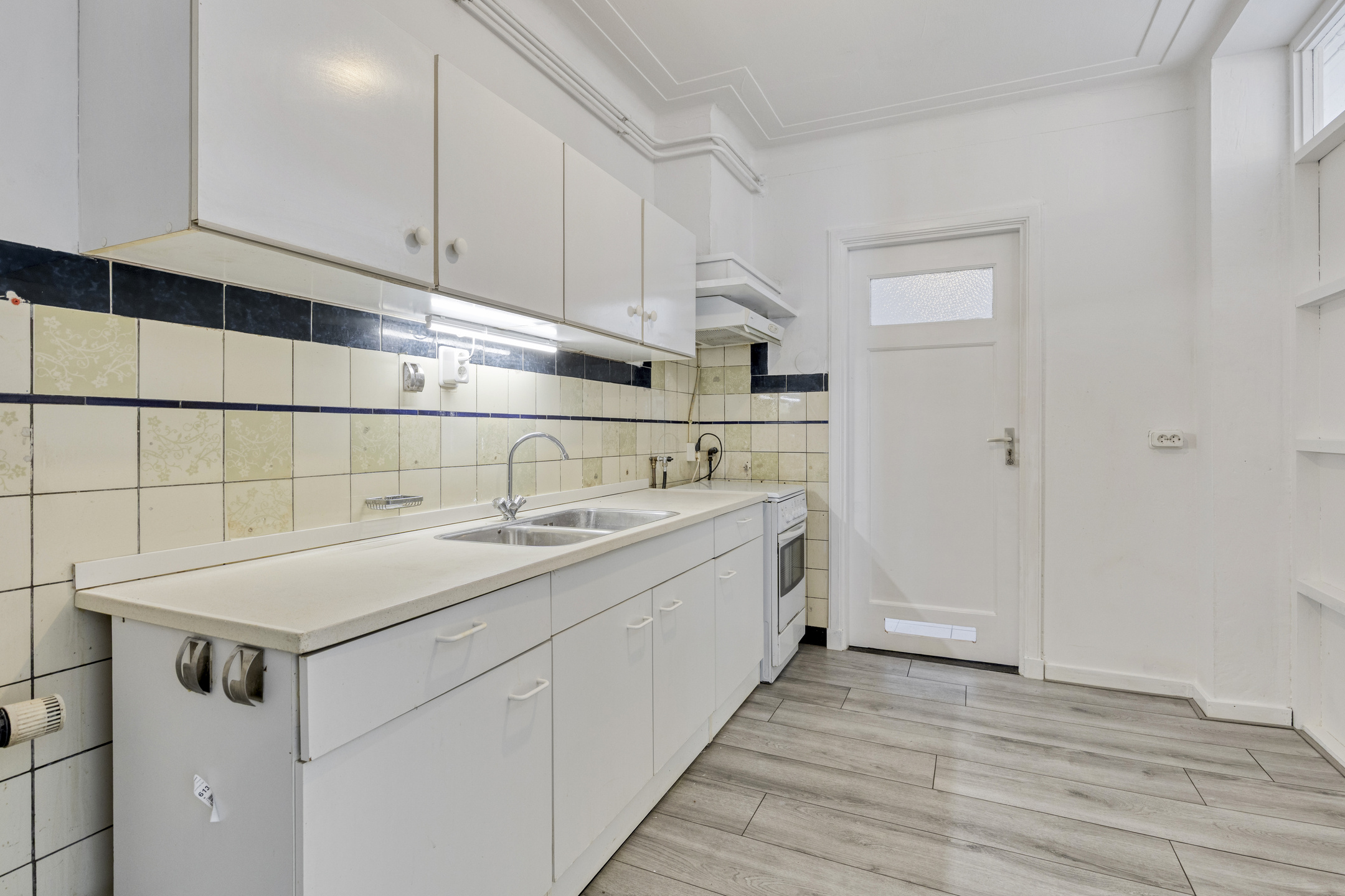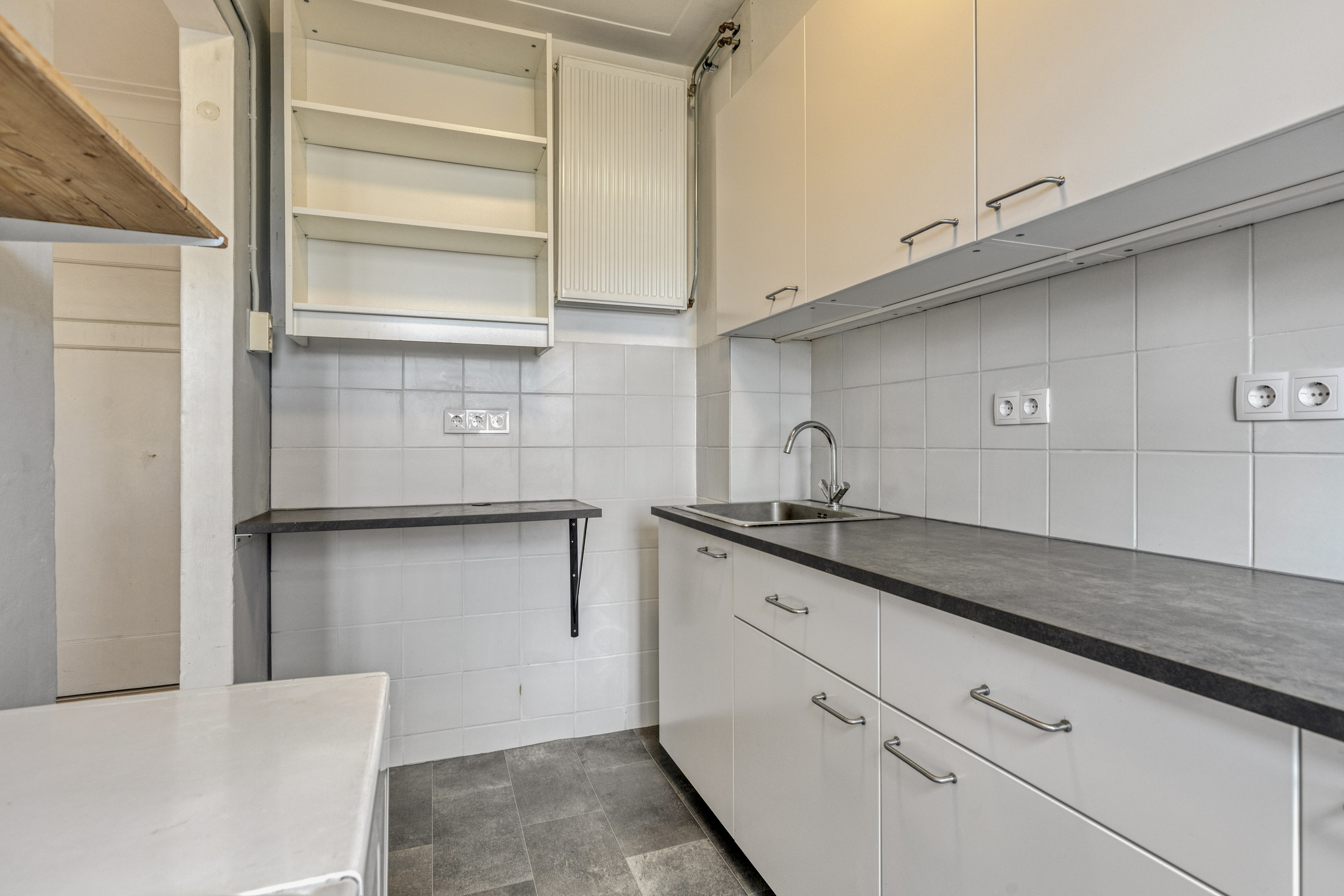 De keuken ligt centraal in de woning. Vanuit hier heb je toegang tot de kantoor-/woonruimte en de badkamer aan de achterzijde. De opstelling is bovendien goed geschikt om te worden aangepast naar een open keuken (verwijderen tussenwand van hout), waardoor de begane grond zich ook uitstekend leent voor gebruik als royale leefverdieping. Dat maakt deze laag bijzonder interessant voor wie graag keuzes heeft in indeling en gebruik.
