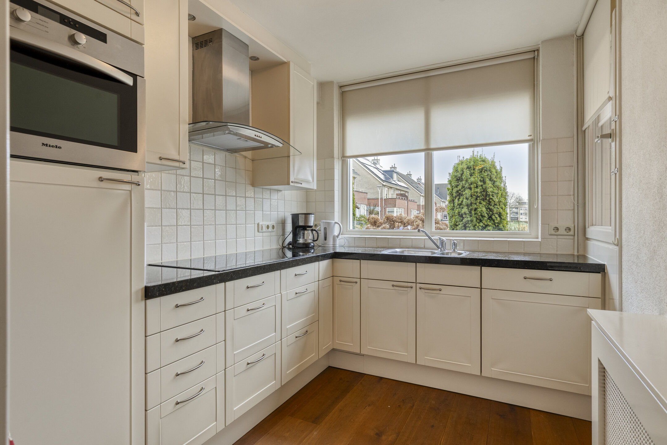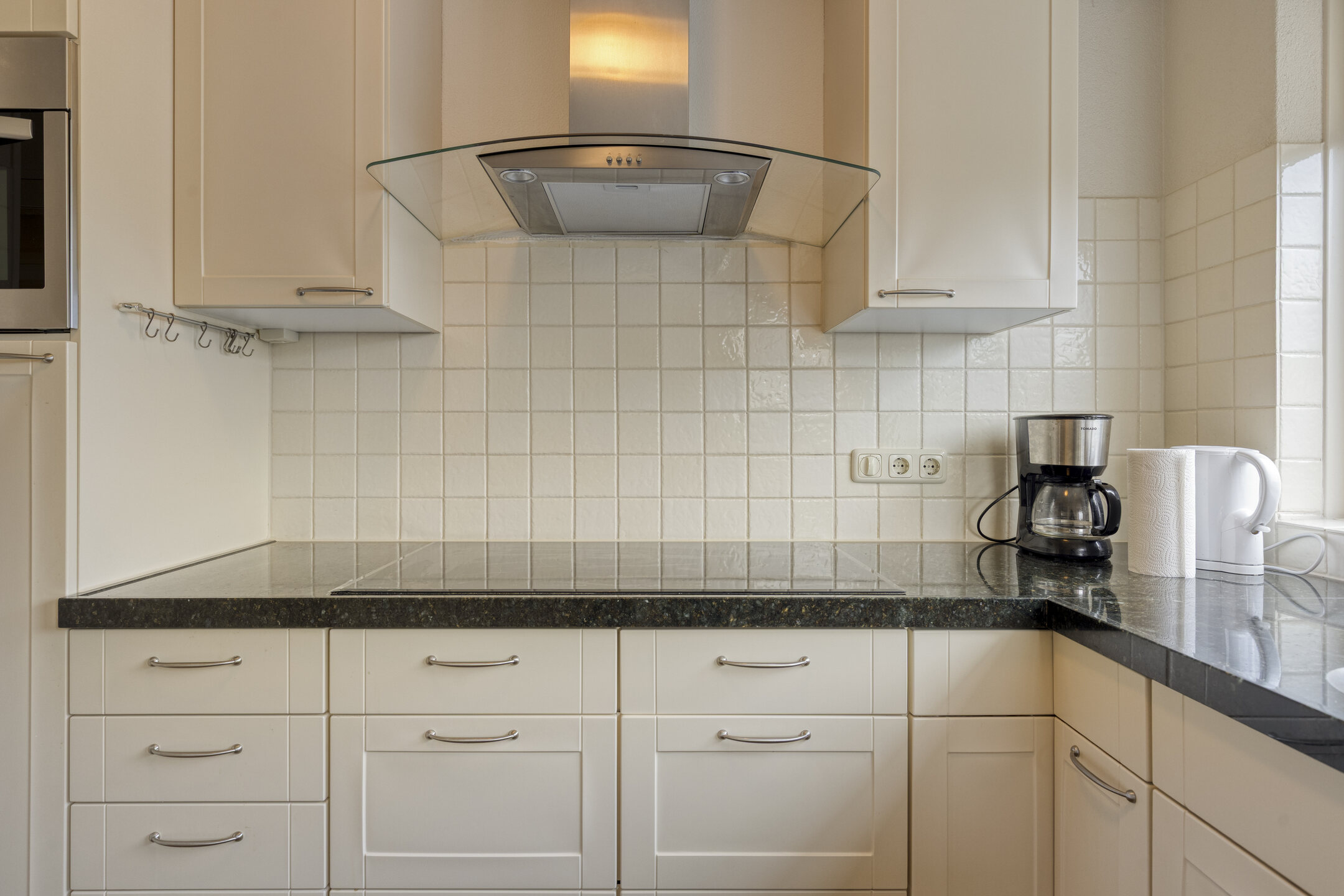 De halfopen keuken ligt aan de voorzijde en heeft een fijne lichtinval. De keuken is voorzien van een koelkast, combi-oven, vaatwasser en inductiekookplaat en biedt voldoende kastruimte voor dagelijks gebruik. Ook tijdens het koken geniet je van het vrije uitzicht aan de voorzijde.
