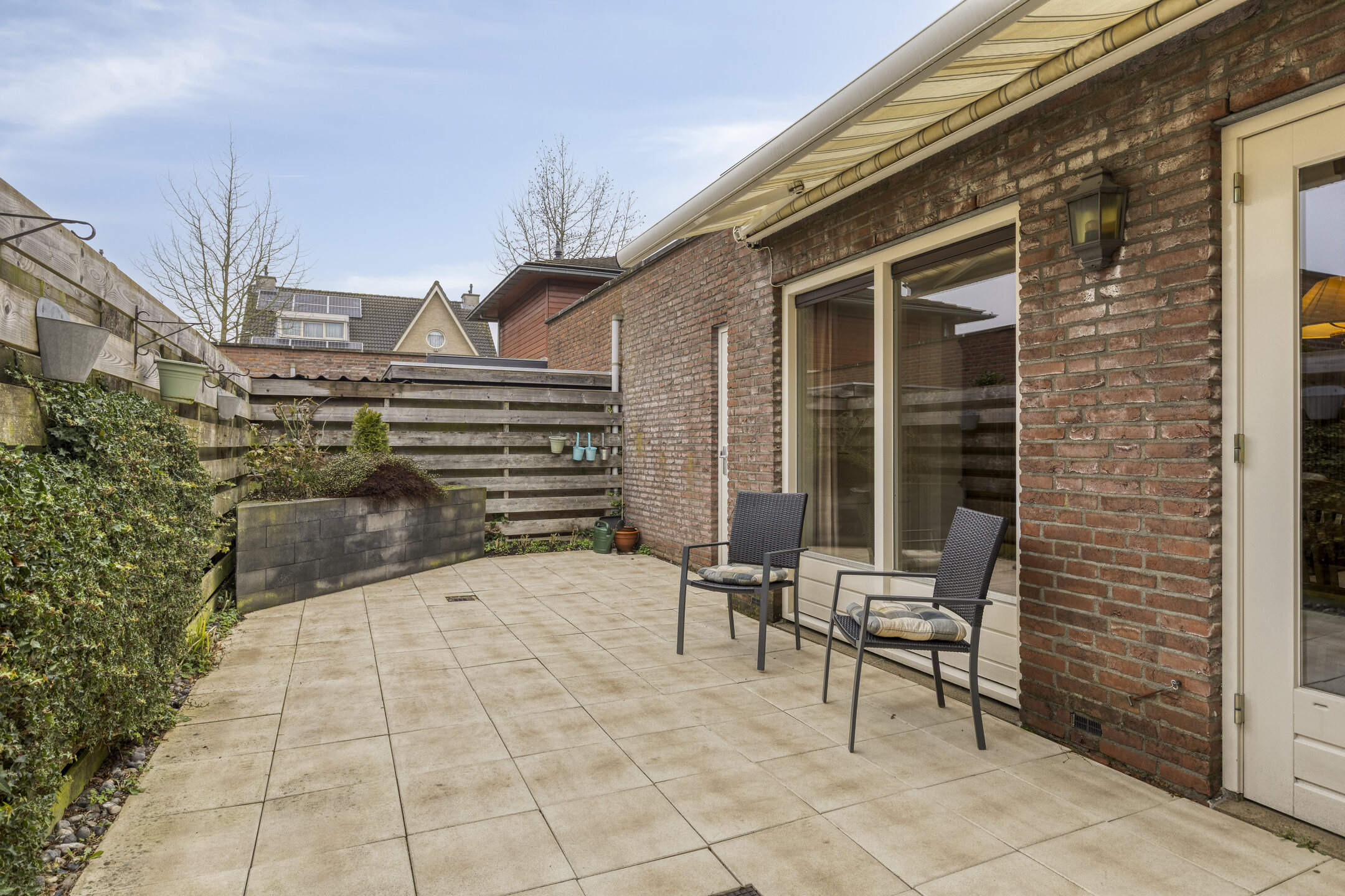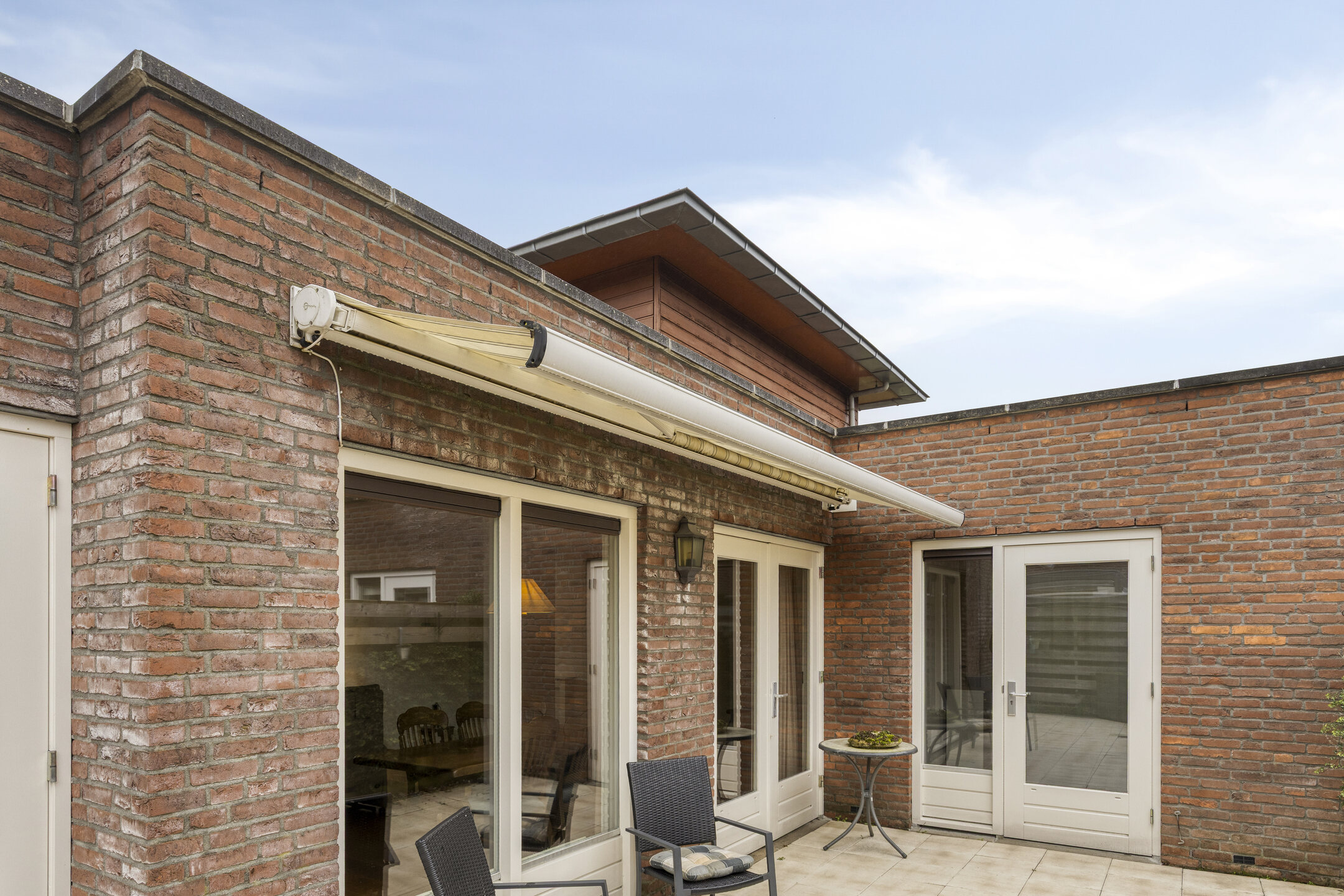 De achterzijde bestaat uit een onderhoudsvriendelijke patio op het zuidwesten. Hier geniet je in de middag en avond van de zon. Een elektrisch zonnescherm biedt voldoende schaduw. De voortuin is verzorgd aangelegd met onder andere hortensia’s die in de zomer voor een mooi plaatje zorgen.