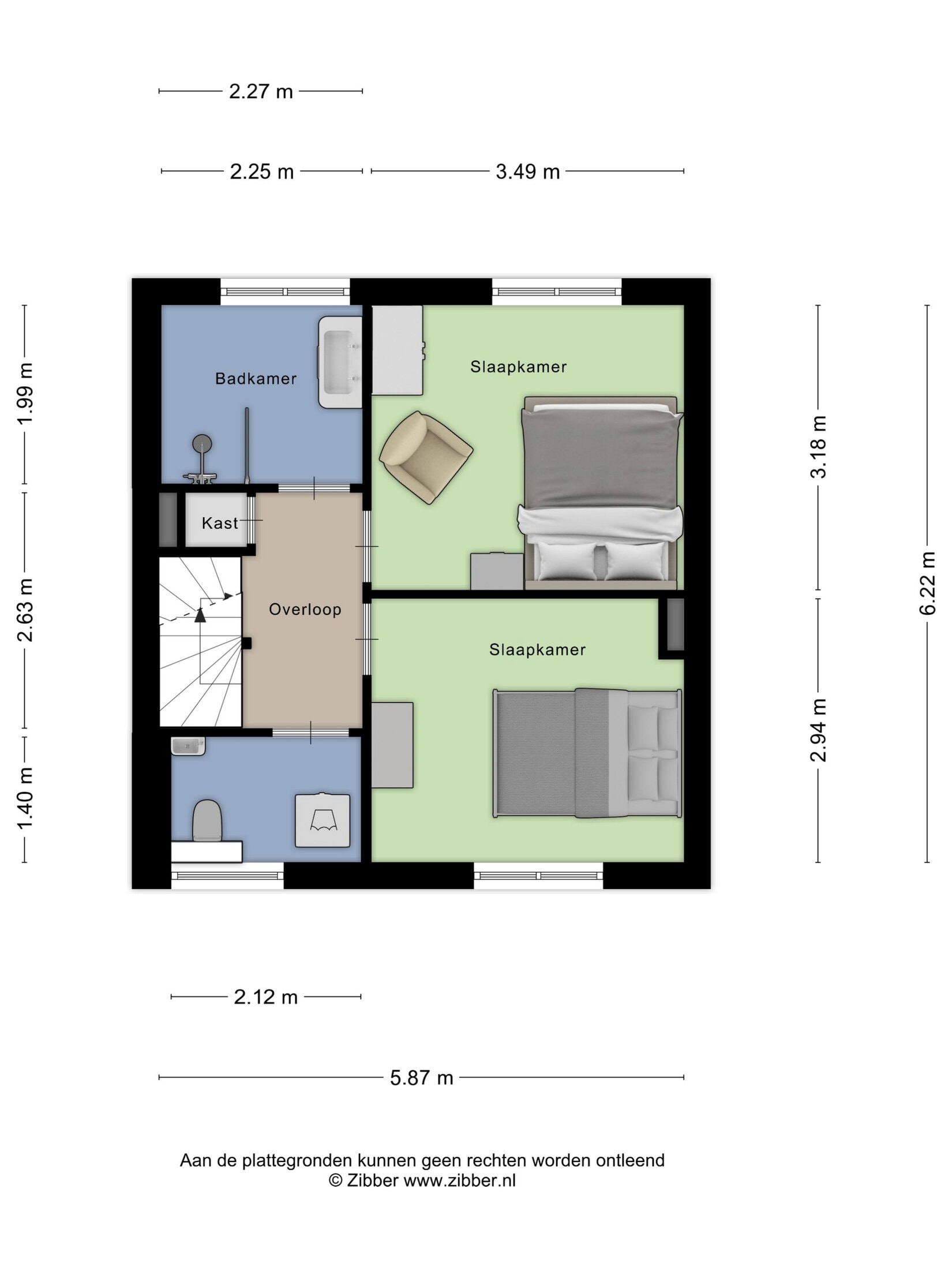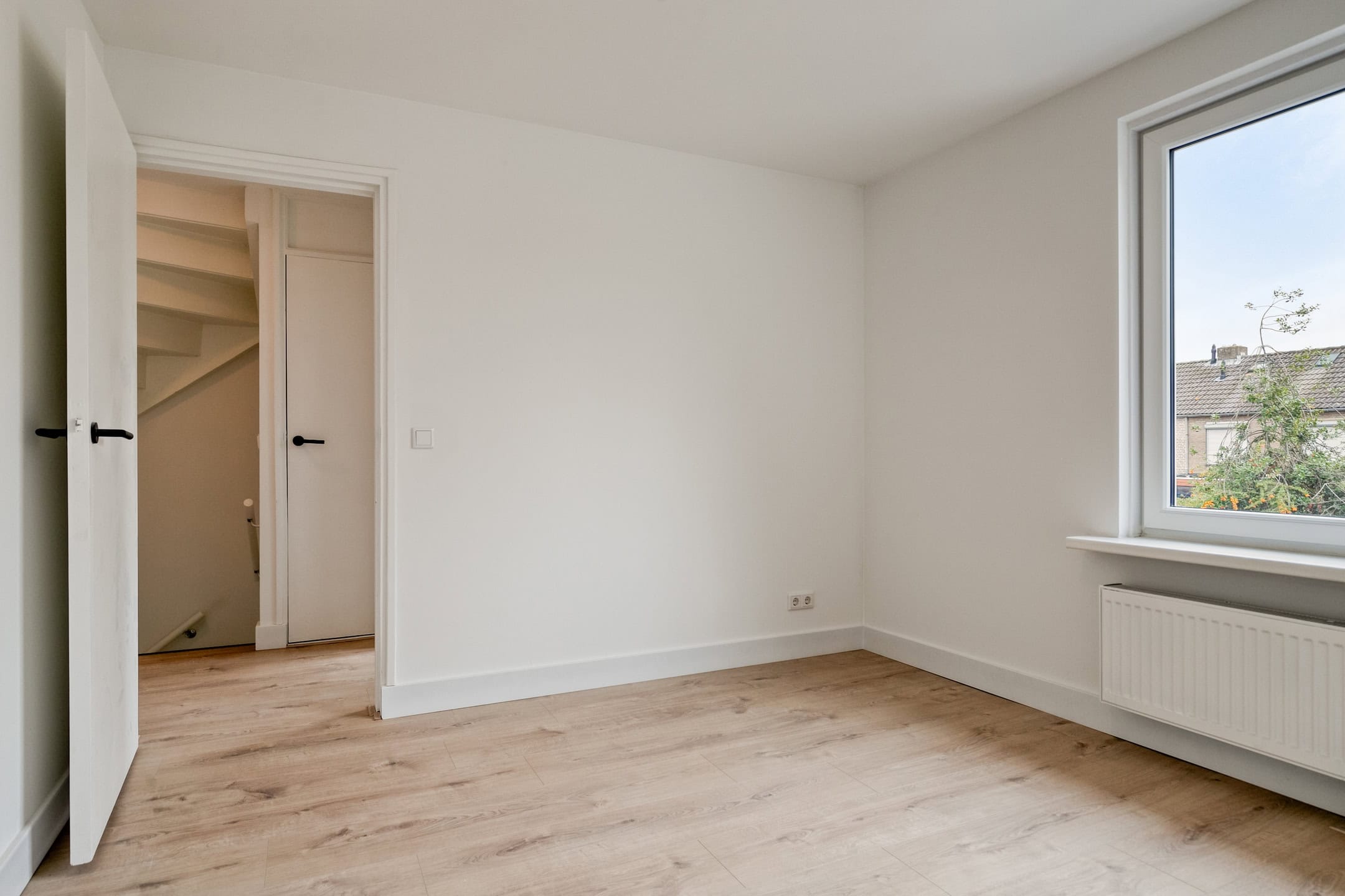 Op de eerste verdieping bevinden zich twee ruime slaapkamers, beide met een laminaatvloer en grote ramen die zorgen voor een prettige lichtinval. De kamers zijn geschikt als hoofdslaapkamer, kinderkamer of werkkamer – precies wat je nodig hebt in een gezinswoning.