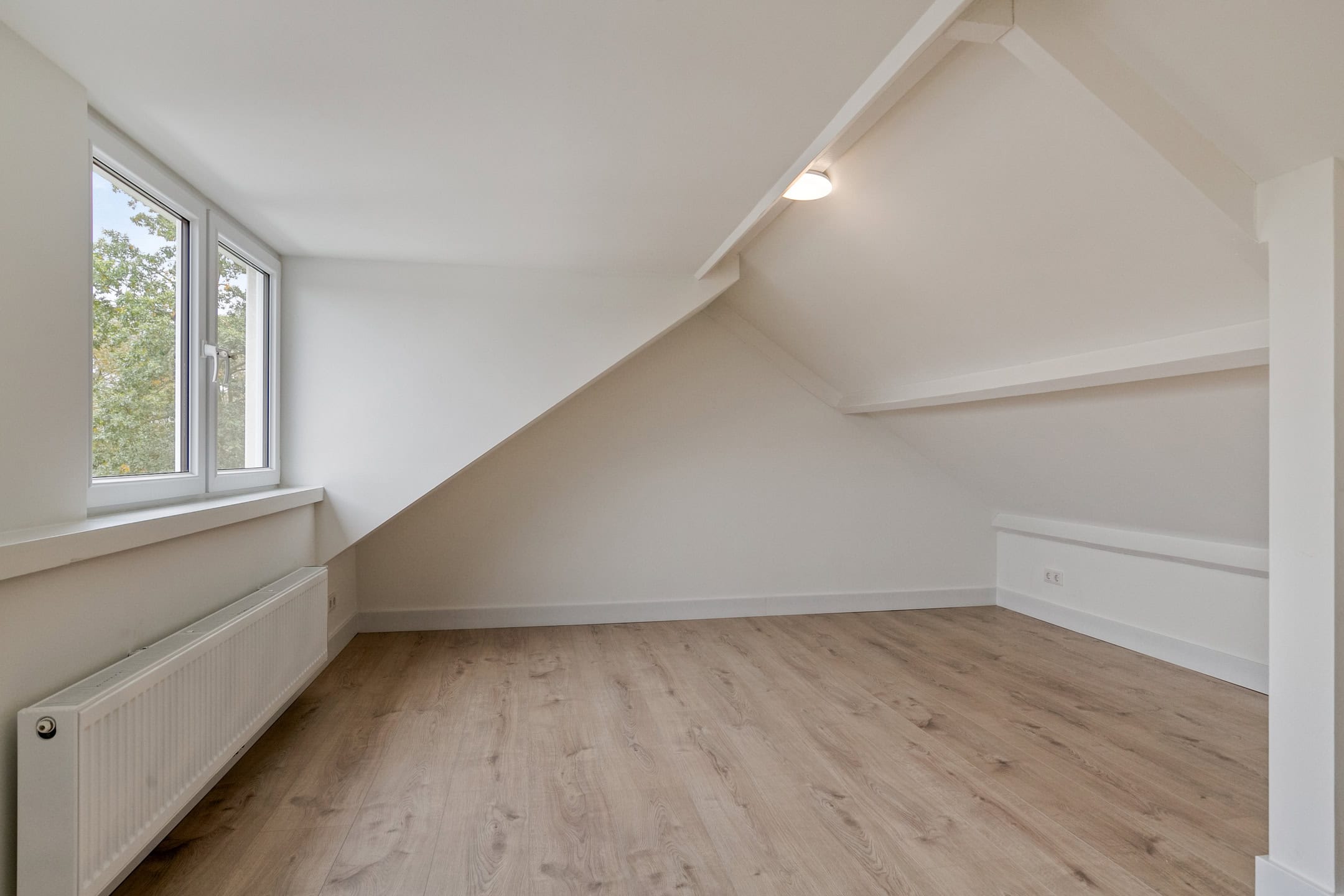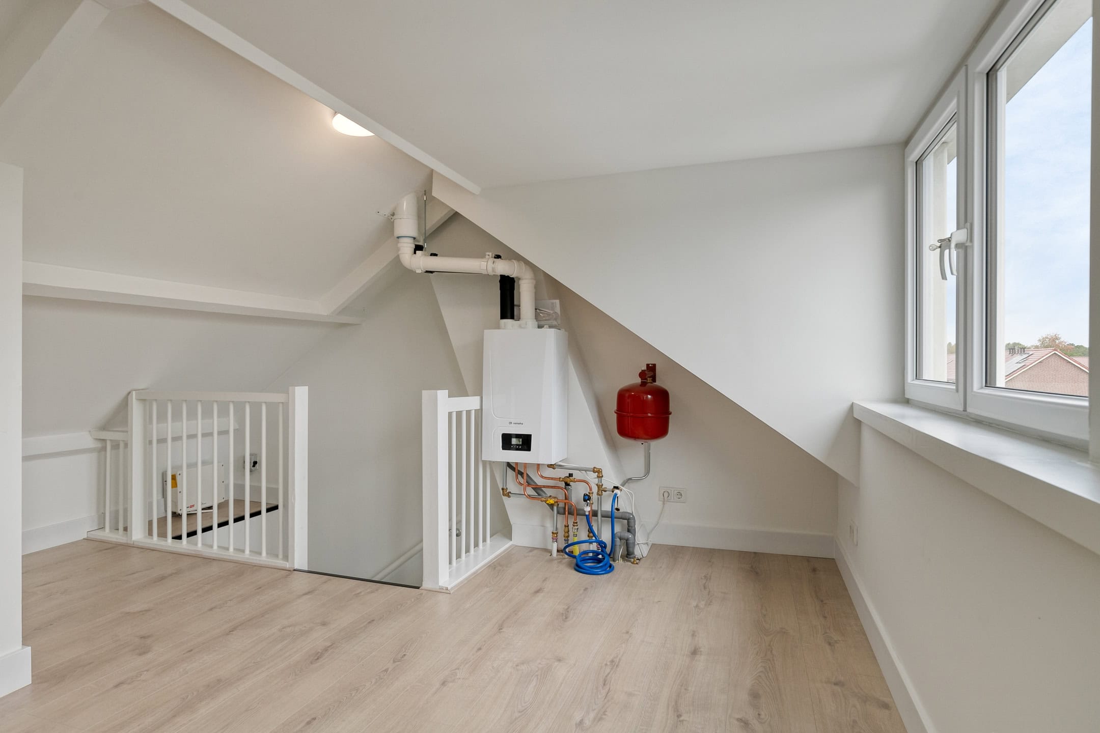 De royale zolderverdieping is voorzien van een brede dakkapel, waardoor een volwaardige extra kamer is ontstaan. Deze ruimte leent zich uitstekend als slaapkamer, werkkamer of hobbyruimte. Ook hier ligt een nette laminaatvloer en bevindt zich de nieuwe HR-combiketel (Remeha, 2025).
