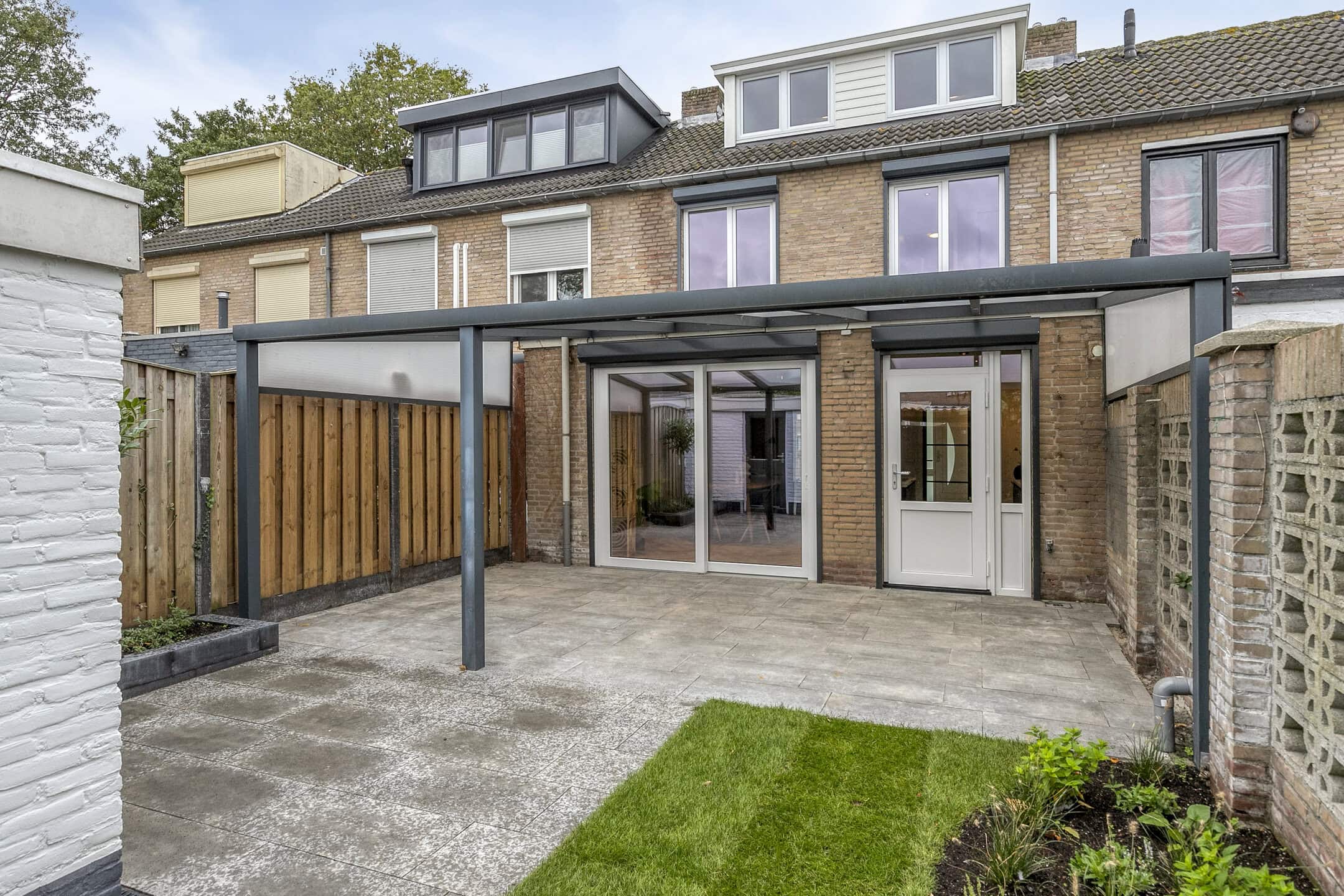 Zowel de voor- als achtertuin zijn in 2025 volledig opnieuw aangelegd. De voortuin is onderhoudsarm en verzorgd, terwijl de achtertuin uitnodigt tot buitenleven. Onder de aluminium terrasoverkapping geniet je beschut van het buiten zijn, in elk seizoen. Achter in de tuin staat een stenen berging met elektra en een poort naar de vrije achterom.