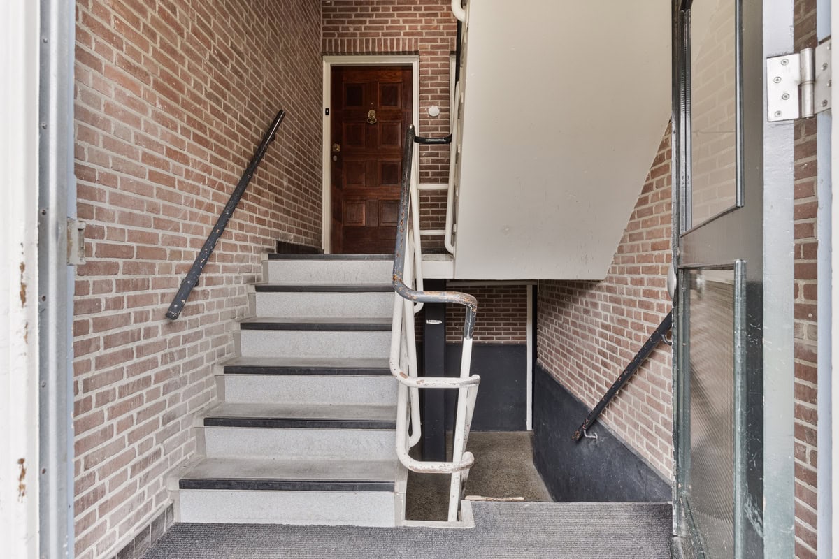 Bij binnenkomst via de gezamenlijke entree bereikt u de hal met de brievenbussen. Vanaf hier leidt de trap u naar de tweede verdieping, waar de woning zich bevindt.