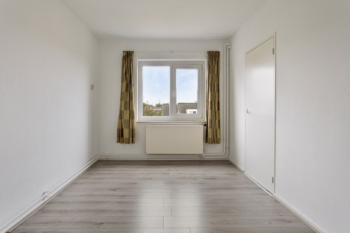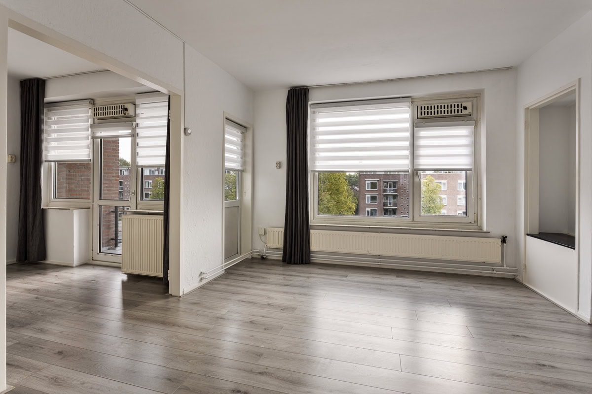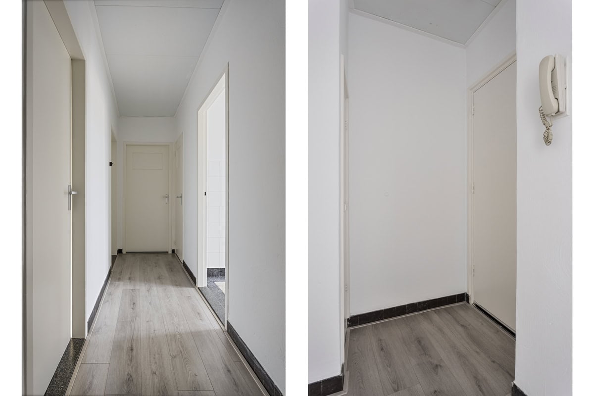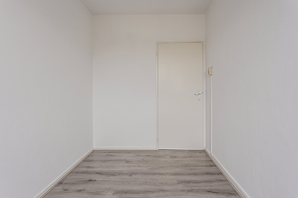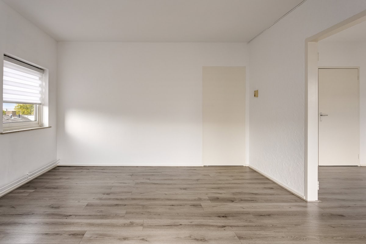 Bij binnenkomst word je verwelkomd in een lichte hal met keurige laminaatvloer en een vernieuwde meterkast. De hal geeft toegang tot een eenvoudige maar nette toiletruimte. De ruime woonkamer heeft een moderne laminaatvloer en een overdekt balkon aan de voorzijde. Dankzij het extra zijraam geniet je hier van heerlijk veel licht.