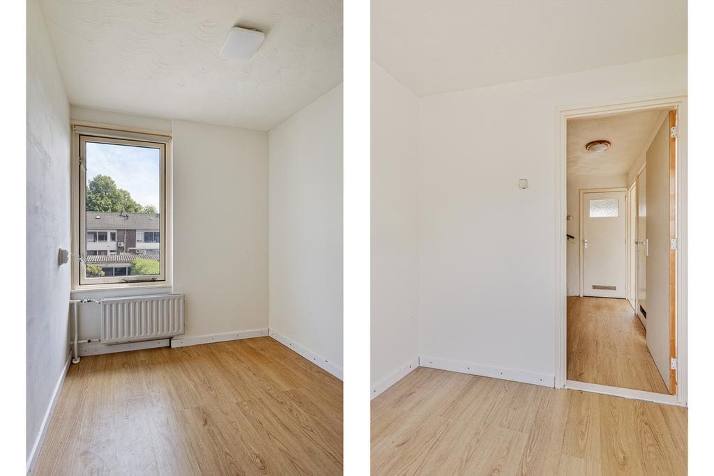 Overloop met toegang tot de vertrekken en trapopgang naar de tweede verdieping. Op de verdieping zijn 3 slaapkamers, allen voorzien van een laminaatvloer en zeer licht door de grote raampartijen.