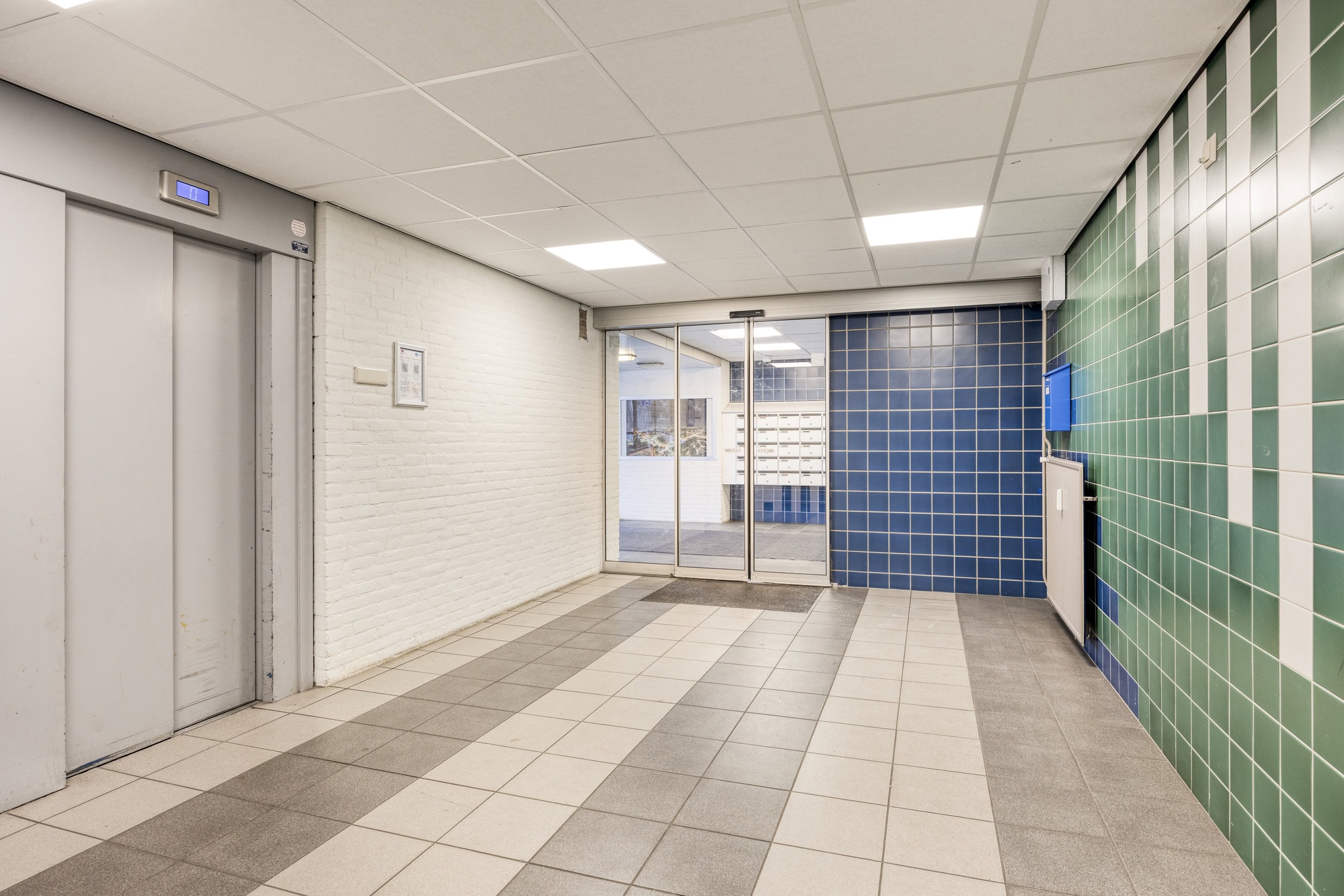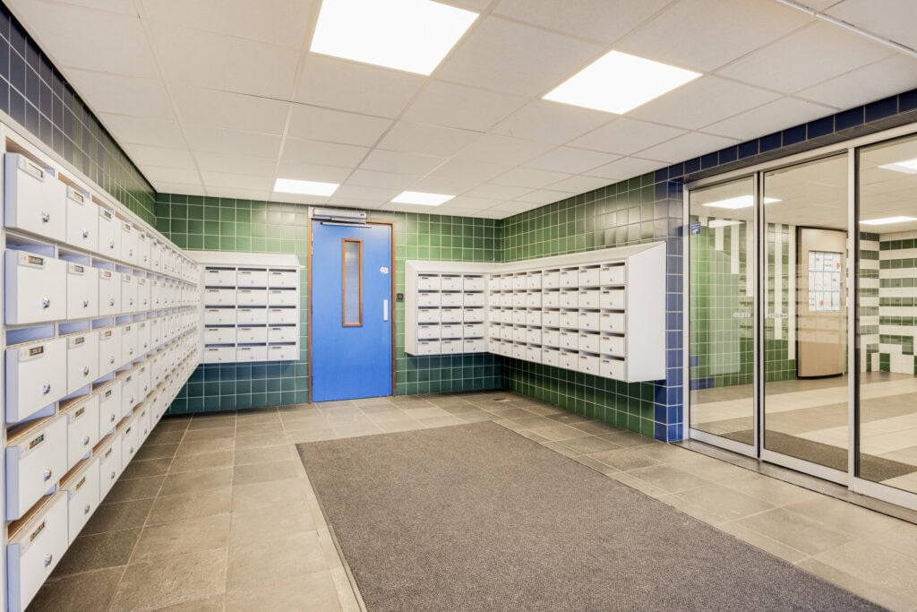 De centrale entree is verzorgd en biedt toegang tot het belkeuzesysteem, de brievenbussen en de liften. Op de begane grond bevinden zich de individuele bergingen; ideaal voor fietsen, koffers of seizoensspullen. Via de lift kom je op de derde verdieping. De binnen-corridor is netjes afgewerkt en leidt naar de voordeur van het appartement.