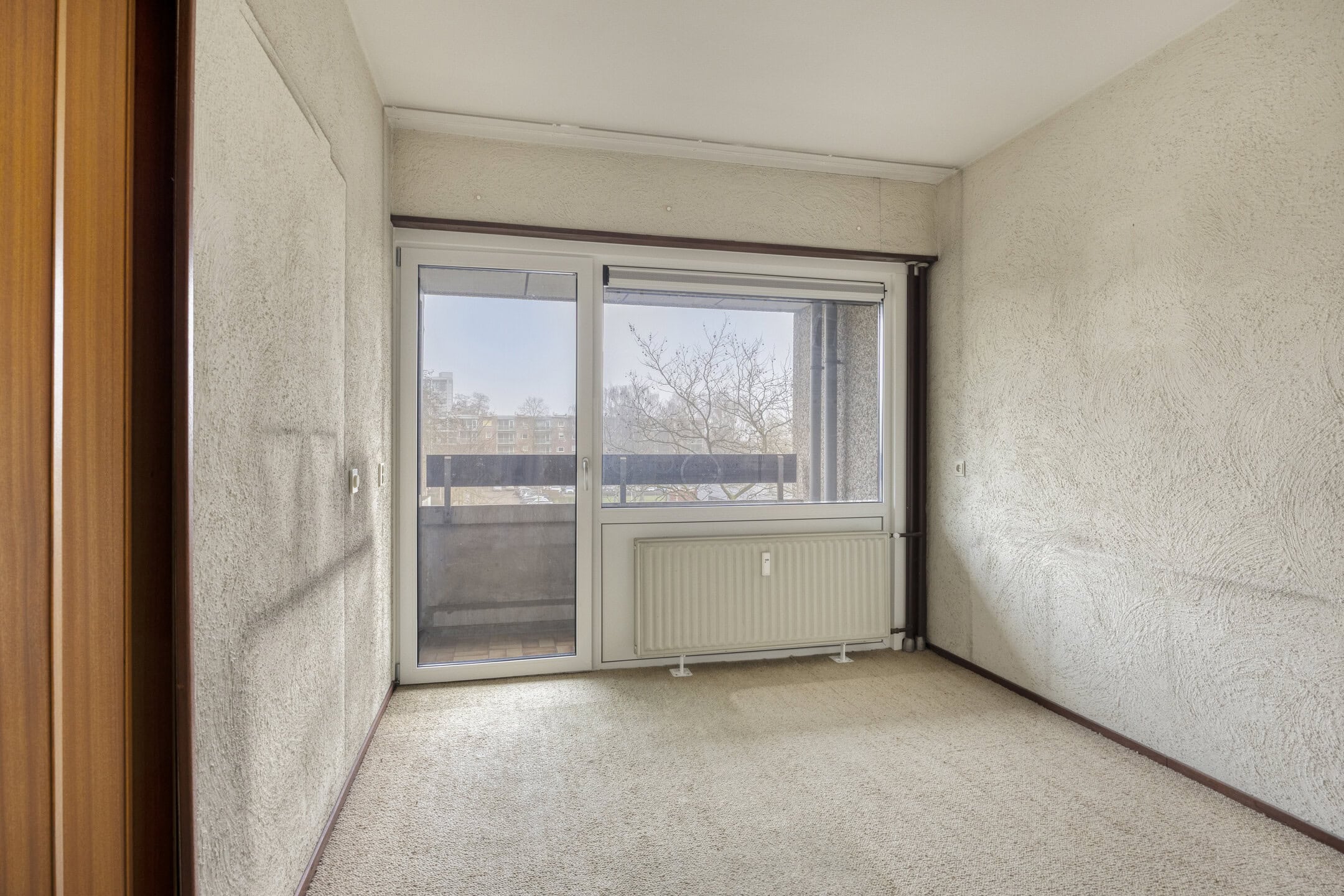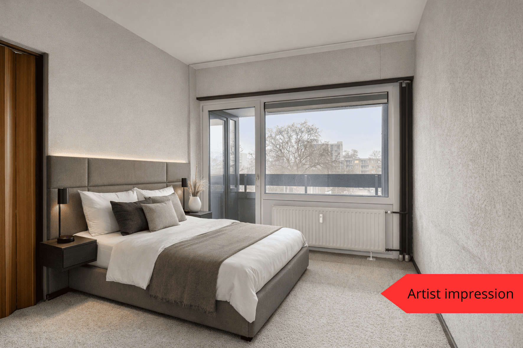 De slaapkamer is verrassend ruim en voelt rustig aan. Er is ruimte voor een tweepersoonsbed en een grote kast. Vanuit de slaapkamer heb je direct toegang tot het balkon en tot de badkamer.