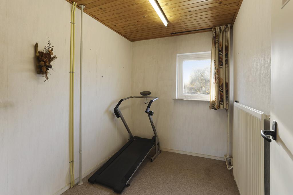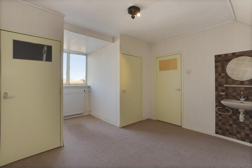 De ketel is geplaatst in de berging aan de achterzijde. De slaapkamer is voorzien van tapijtvloer en een wasbak. Aan de achterzijde is een dakkapel geplaatst waardoor er een grote vierde slaapkamer is gerealiseerd. De ruimte kan ook opgesplitst worden in twee (slaap)kamers. Aan weerszijden van de dakkapel tref je twee inbouwkasten. In de rechter inbouwkast is de witgoedaansluiting gerealiseerd.