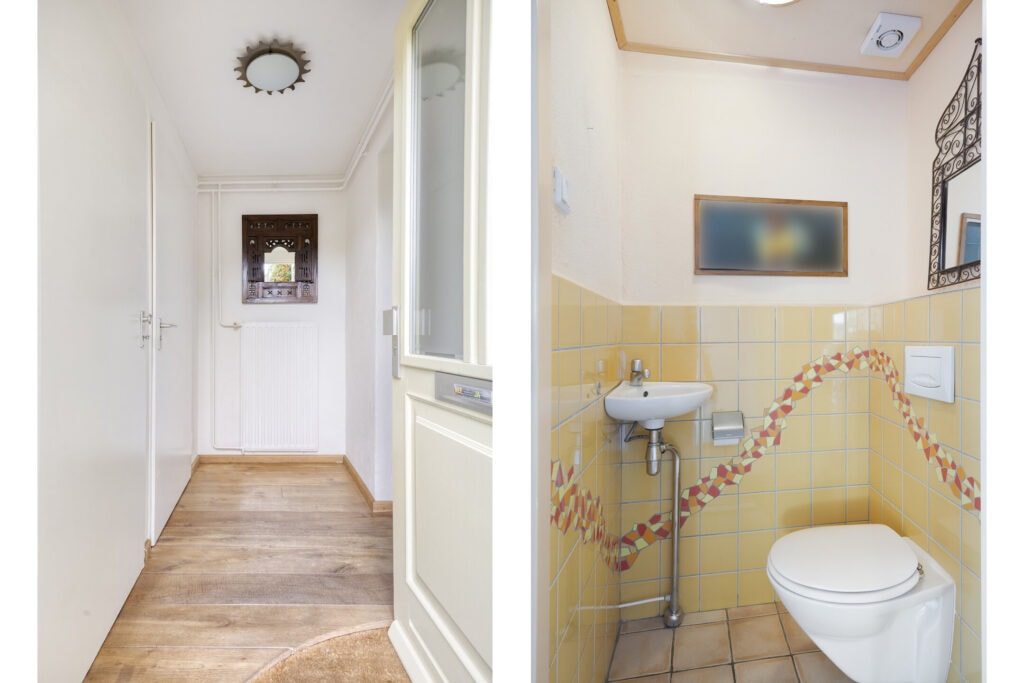 De betegelde badkamer is compleet en beschikt over een douchecabine, 2de toilet, bad en een wasbak. De badkamer is functioneel maar biedt mogelijkheden om geheel naar eigen smaak te moderniseren.
