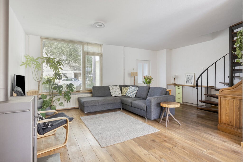 – Uitgebouwde woonkamer met houten vloer en veel lichtinval