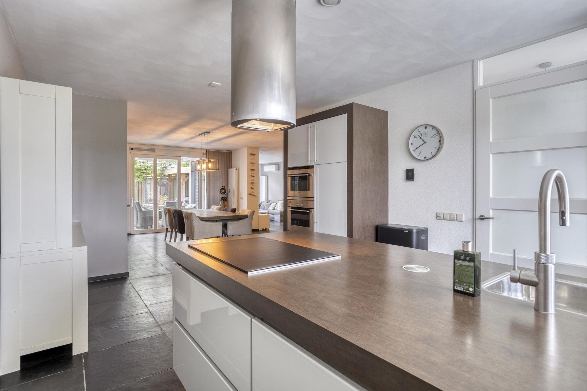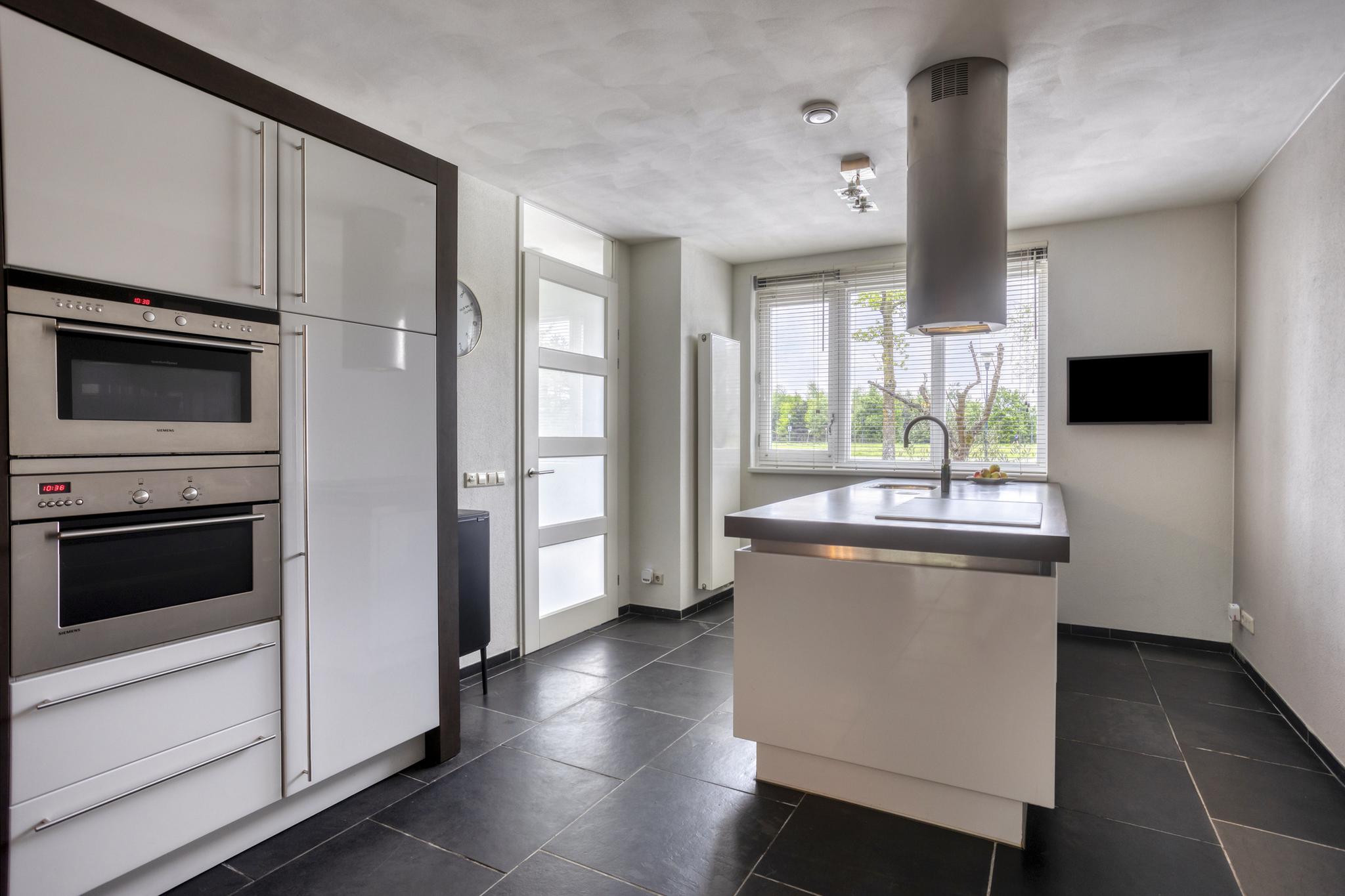 De open keuken is in 2024 gerenoveerd en voorzien van een kook-/spoeleiland met Siemens vaatwasser, Siemens oven, Siemens combi-oven/ magnetron, moderne inductiekookplaat, design afzuigkap, koelkast en een Quooker die zowel kokend als gekoeld bruisend water levert. Een zeer complete keuken voor de enthousiaste thuiskok.