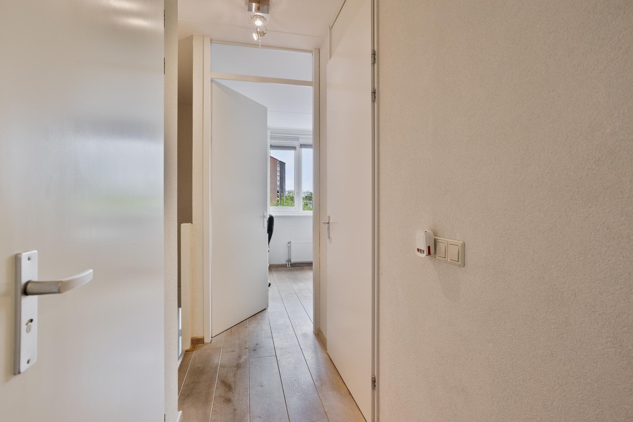 De overloop biedt toegang tot de cv-/technische ruimte en de slaapkamers.