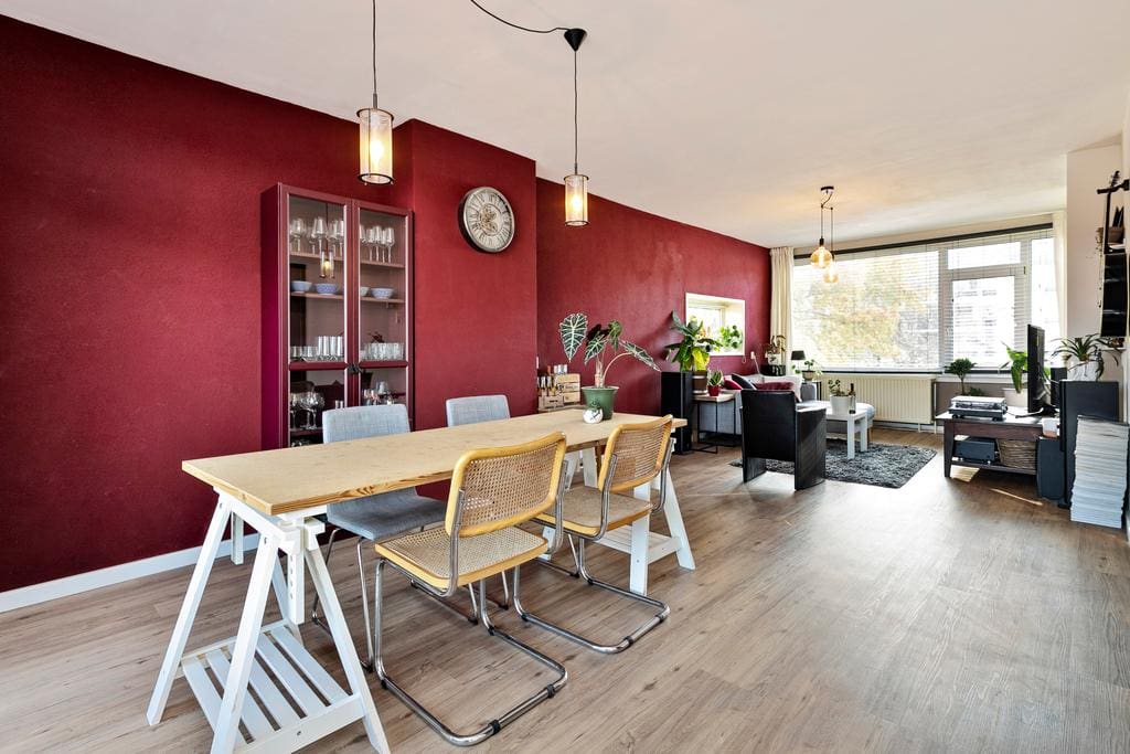 Woonkamer betreft een ruime doorzon woonkamer. In 2018 is een mooie moderne PVC vloer gelegd. Door hoekligging geniet appartement van veel lichtinval, woonkamer heeft namelijk groot hoekraam. Tevens beschikt woonkamer over een groot raam aan zowel voor- als achterzijde.
