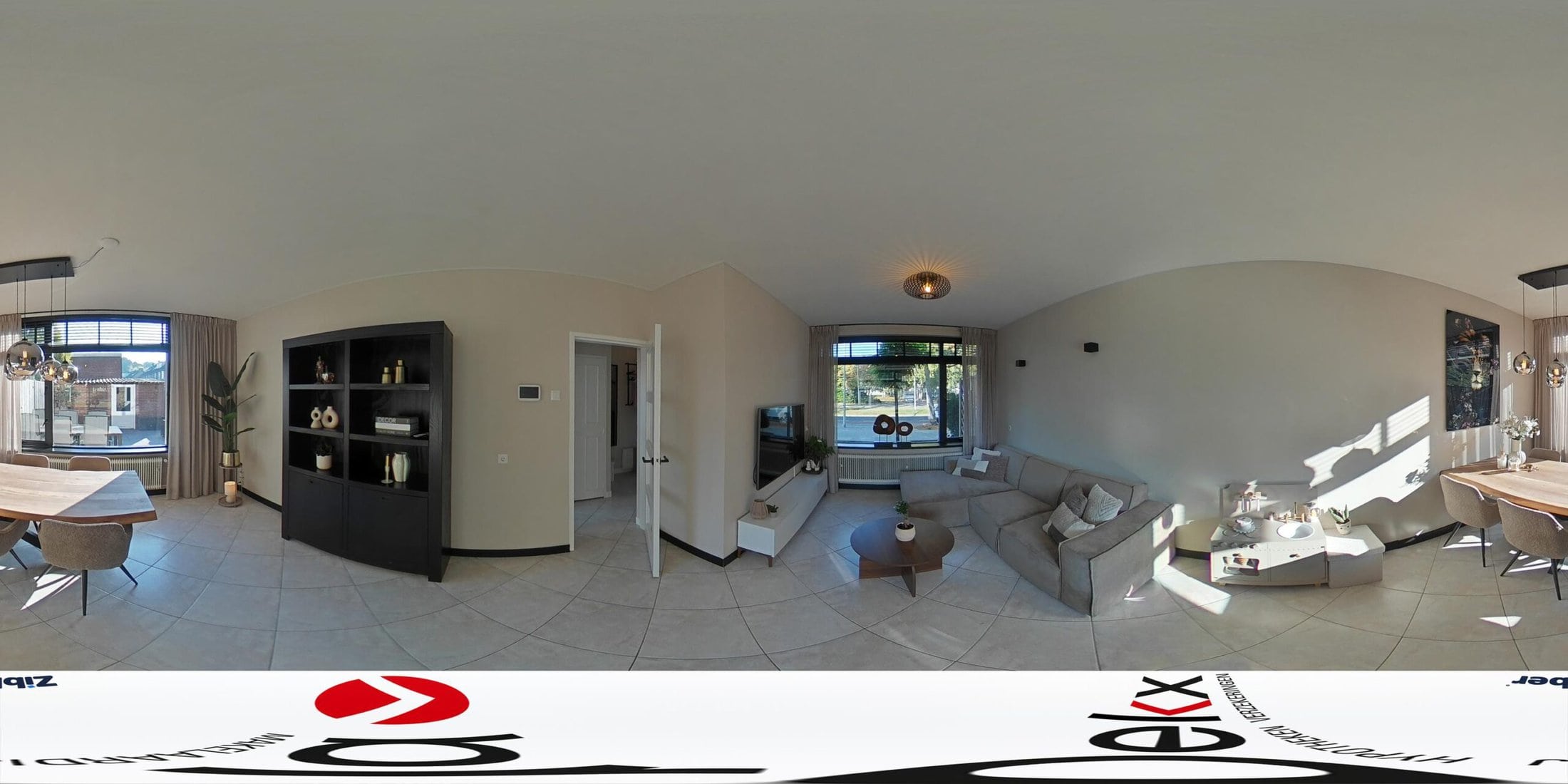 De prettige doorzonkamer beschikt over grote raampartijen aan zowel de voor- als achterzijde, waardoor er in deze ruimte veel natuurlijk licht binnen valt. De moderne tegelvloer en het strakke stucwerk op wanden en plafonds geven de kamer een frisse en eigentijdse uitstraling. Dankzij de royale indeling is er volop plek voor zowel een gezellige zithoek als een ruime eethoek waar het hele gezin kan samenkomen.