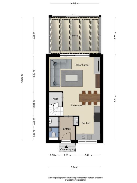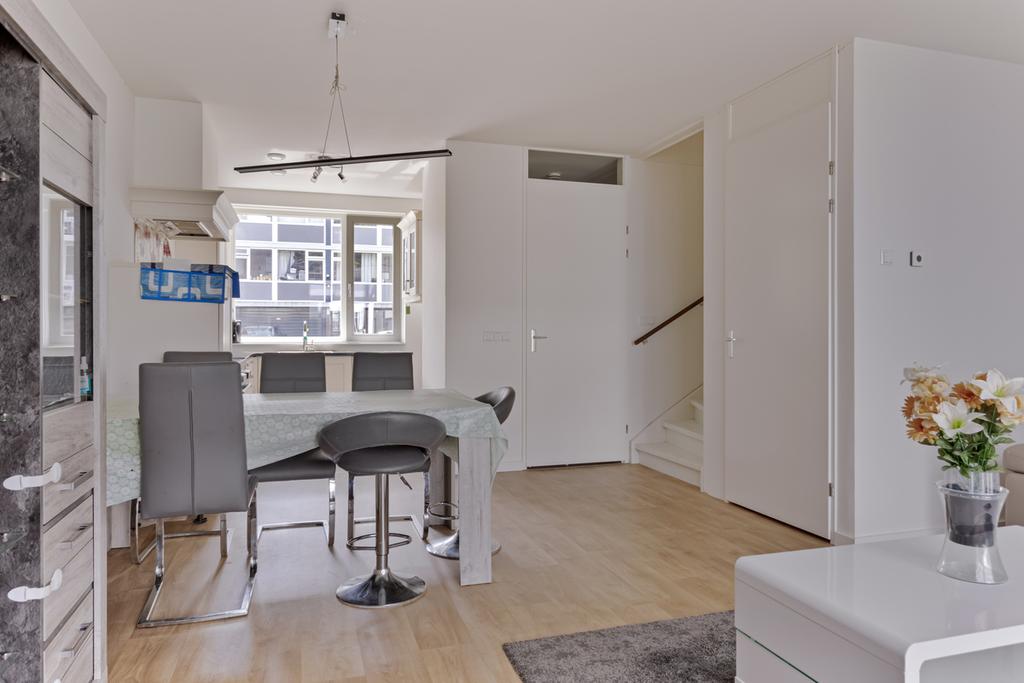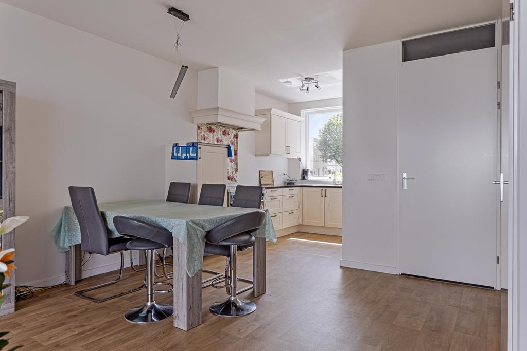 Bij binnenkomst in de hal heeft u toegang tot de meterkast en het half betegelde toilet met fontein. De technische ruimte herbergt de warmtepomp. De ruime woonkamer met open keuken is een perfecte plek voor gezellig samenzijn. De keuken, uitgevoerd in een praktische hoekopstelling, is voorzien van moderne apparatuur zoals een koelkast, vaatwasser, en een oven met inductiekookplaat. Vanuit de woonkamer leidt een schuifdeur naar de serre, wat een verlengstuk vormt van de leefruimte.