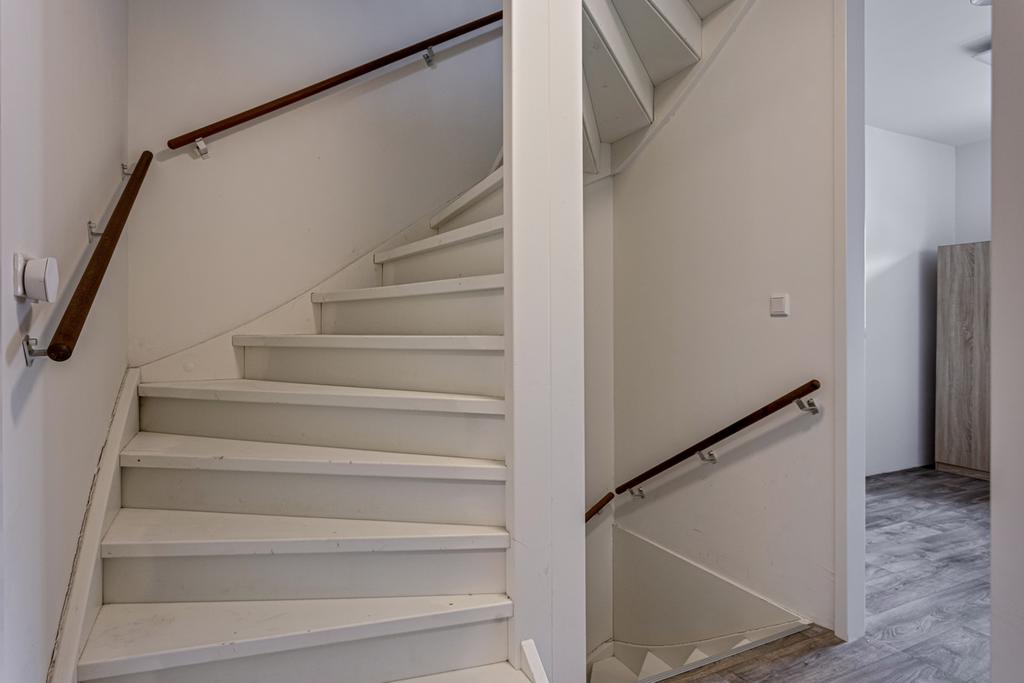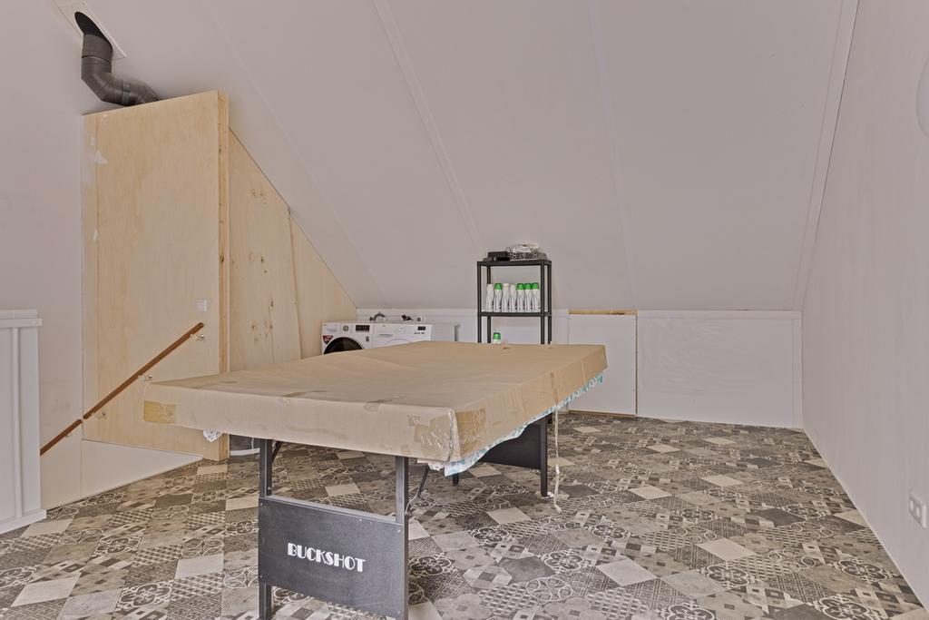 De zolder is eveneens via een vaste trap bereikbaar en biedt veel extra ruimte. Hier vindt u de aansluitingen voor witgoed, een dakraam voor natuurlijke lichtinval, en de WTW-installatie. Onder het schuine dak is volop bergruimte beschikbaar.