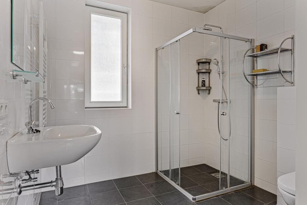 Via de vaste trap bereikt u de eerste verdieping, waar zich drie slaapkamers bevinden. Twee slaapkamers aan de achterzijde en één aan de voorzijde, allen uitgerust met draai/kiepramen. De temperatuur is per slaapkamer apart te regelen voor optimaal comfort. De badkamer is voorzien van een wasbak en spiegel, een wandcloset en een douchecabine.