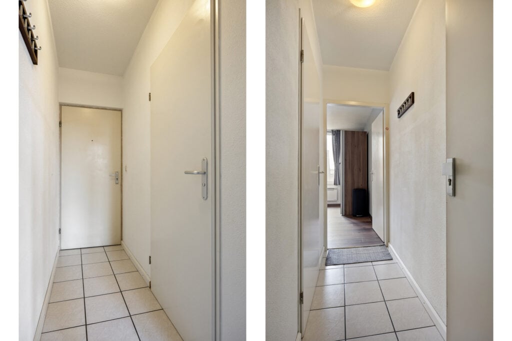 Bij binnenkomst in het appartement komt u in de hal voorzien van tegelvloer die toegang geeft tot de badkamer en de woon-/slaapkamer.