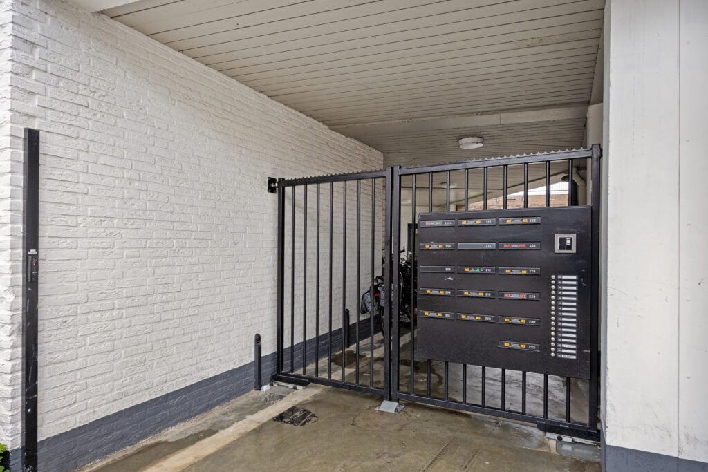 Via de centrale entree met intercominstallatie en trapopgang bereikt u de verdiepingen van het complex. Op het achtergelegen terrein bevindt zich de privé berging, ideaal voor het stallen van fietsen en extra opslag.